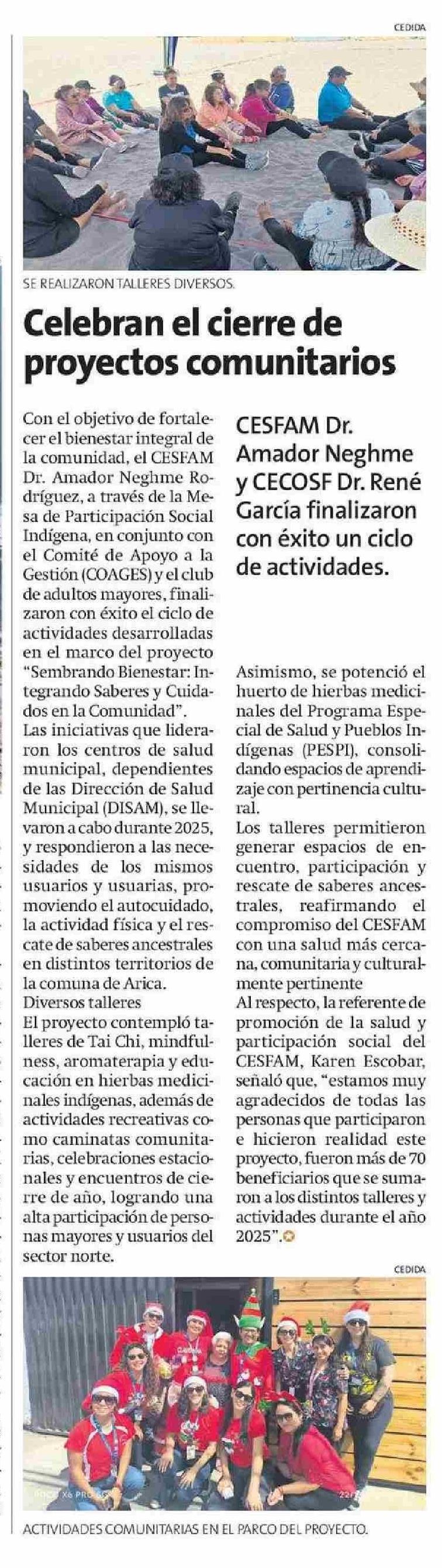 Celebran el cierre de proyectos comunitarios 12-01-2026 La Estrella de Arica |