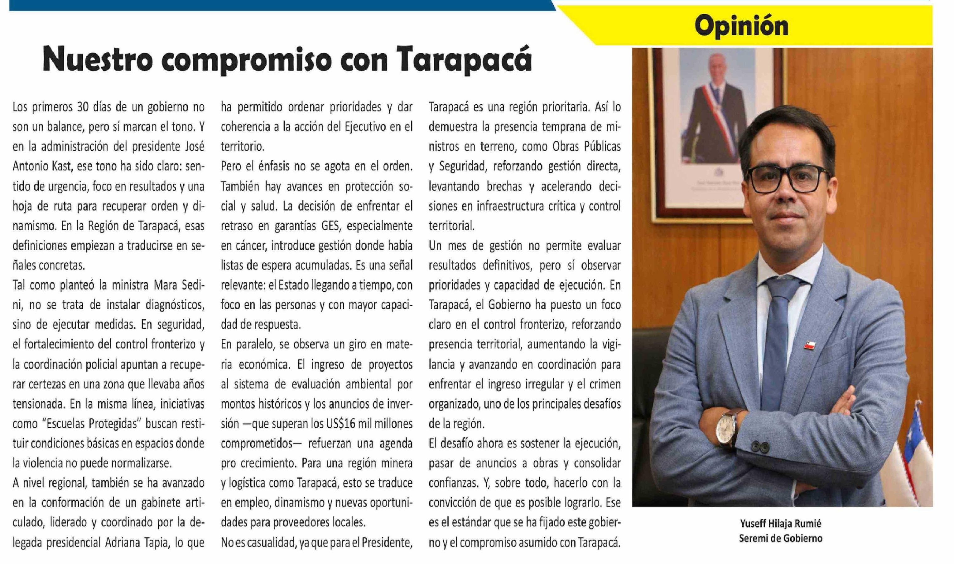 Columnas de Opinión: Nuestro compromiso con Tarapacá 15-04-2026 El Longino |