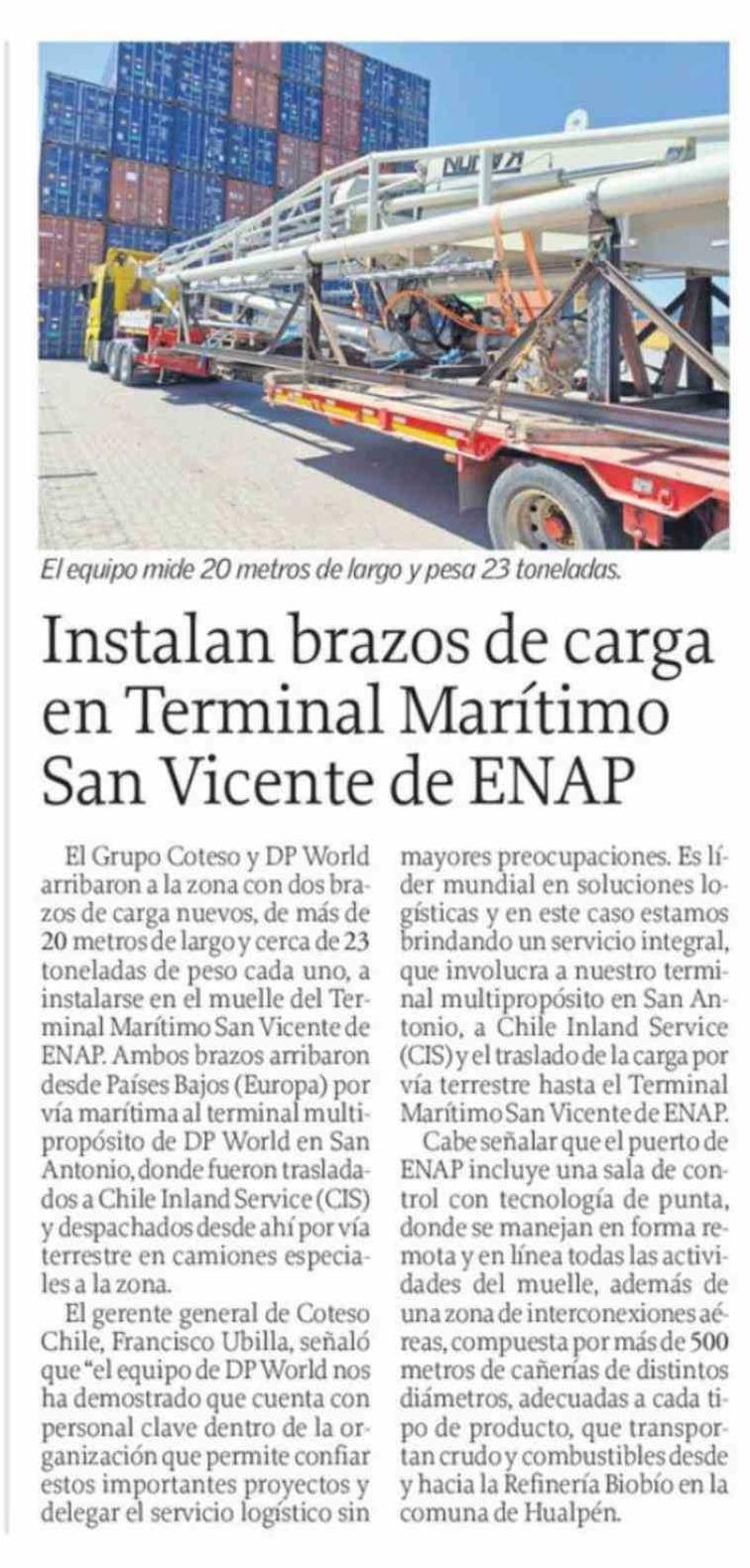 | Título: | Instalan brazos de carga en Terminal Marítimo San Vicente de ENAP |