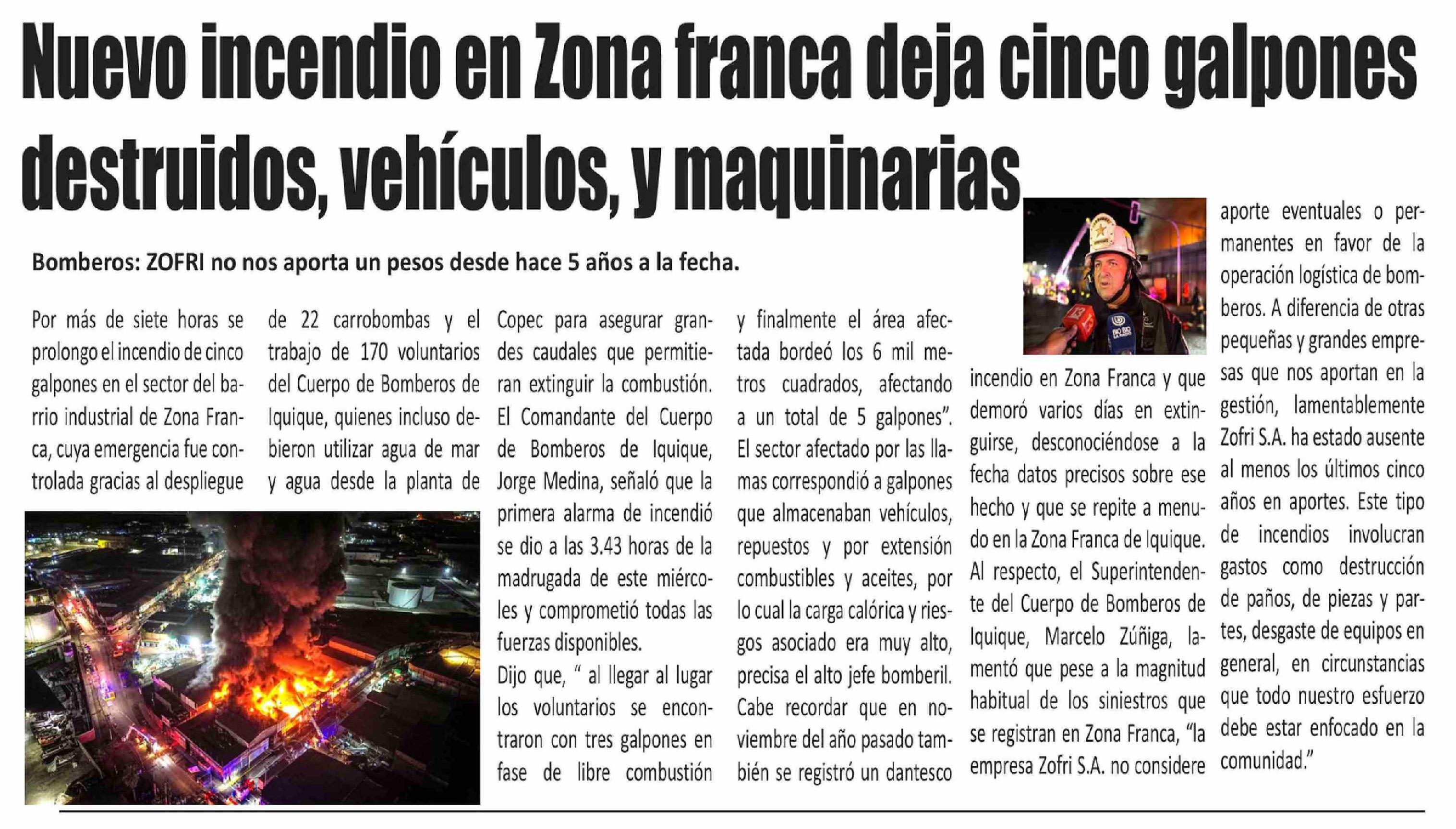 | Título: | Nuevo incendio en Zona franca deja cinco galpones destruidos, vehículos, y maquinarias |