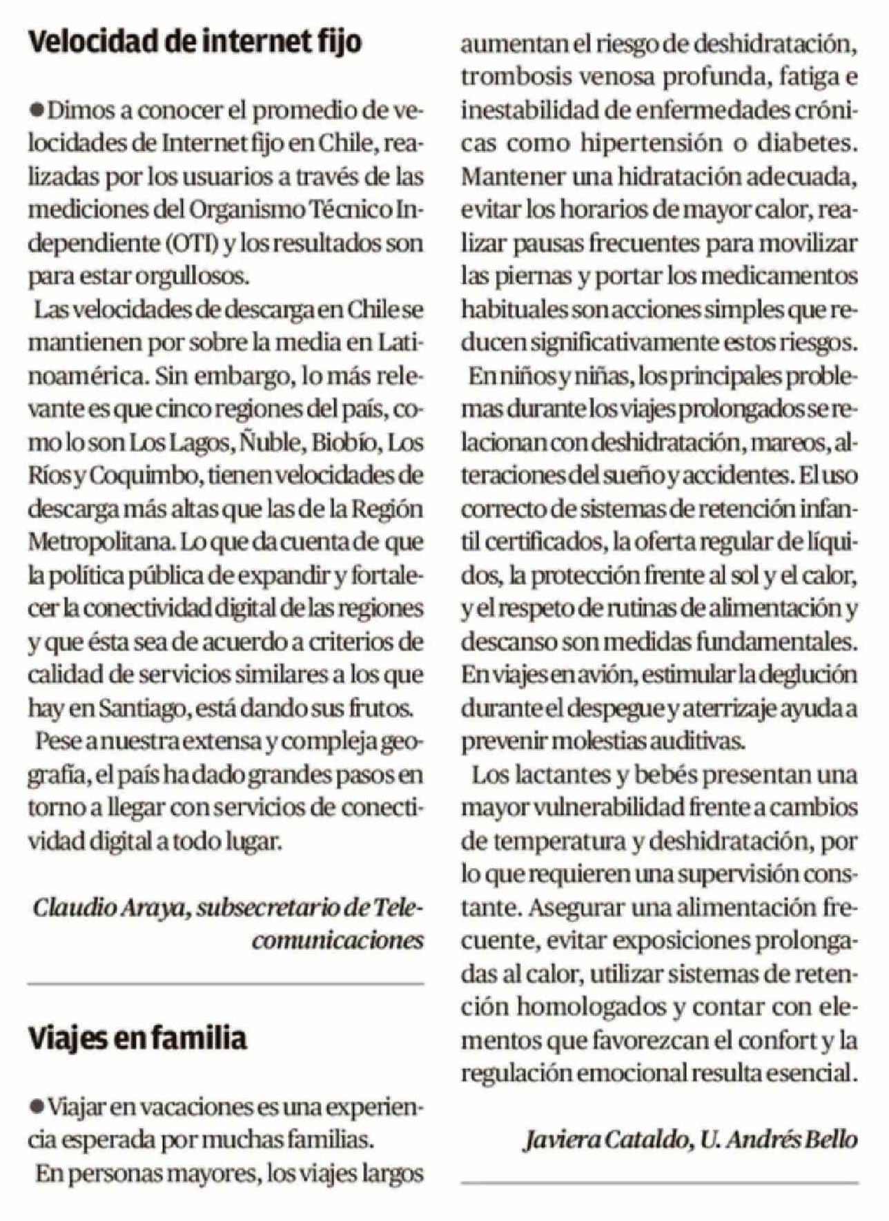 Cartas: Viajes en familia 10-02-2026 El Austral de la Araucanía |