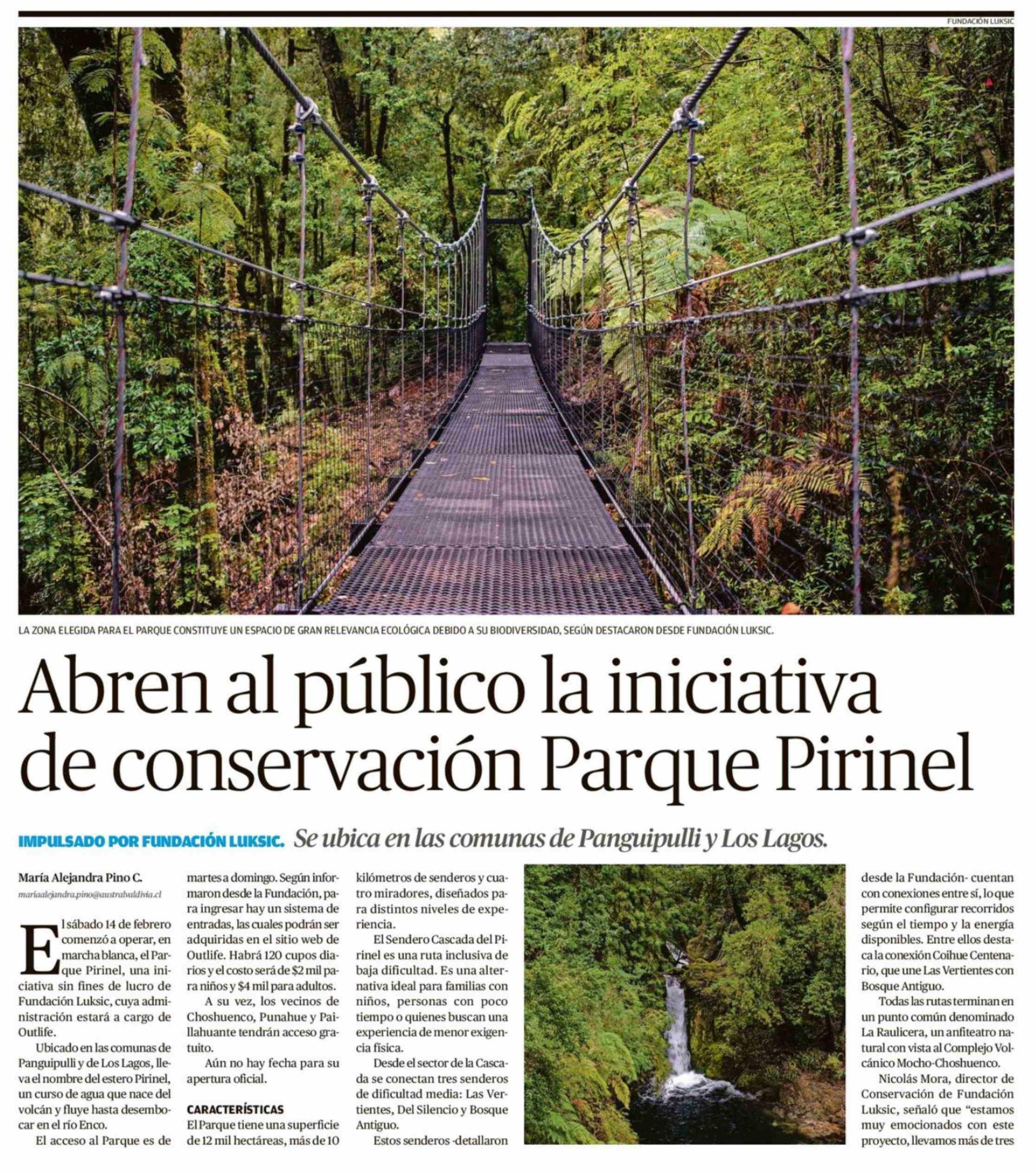 Título: Abren al público la iniciativa de conservación Parque Pirinel