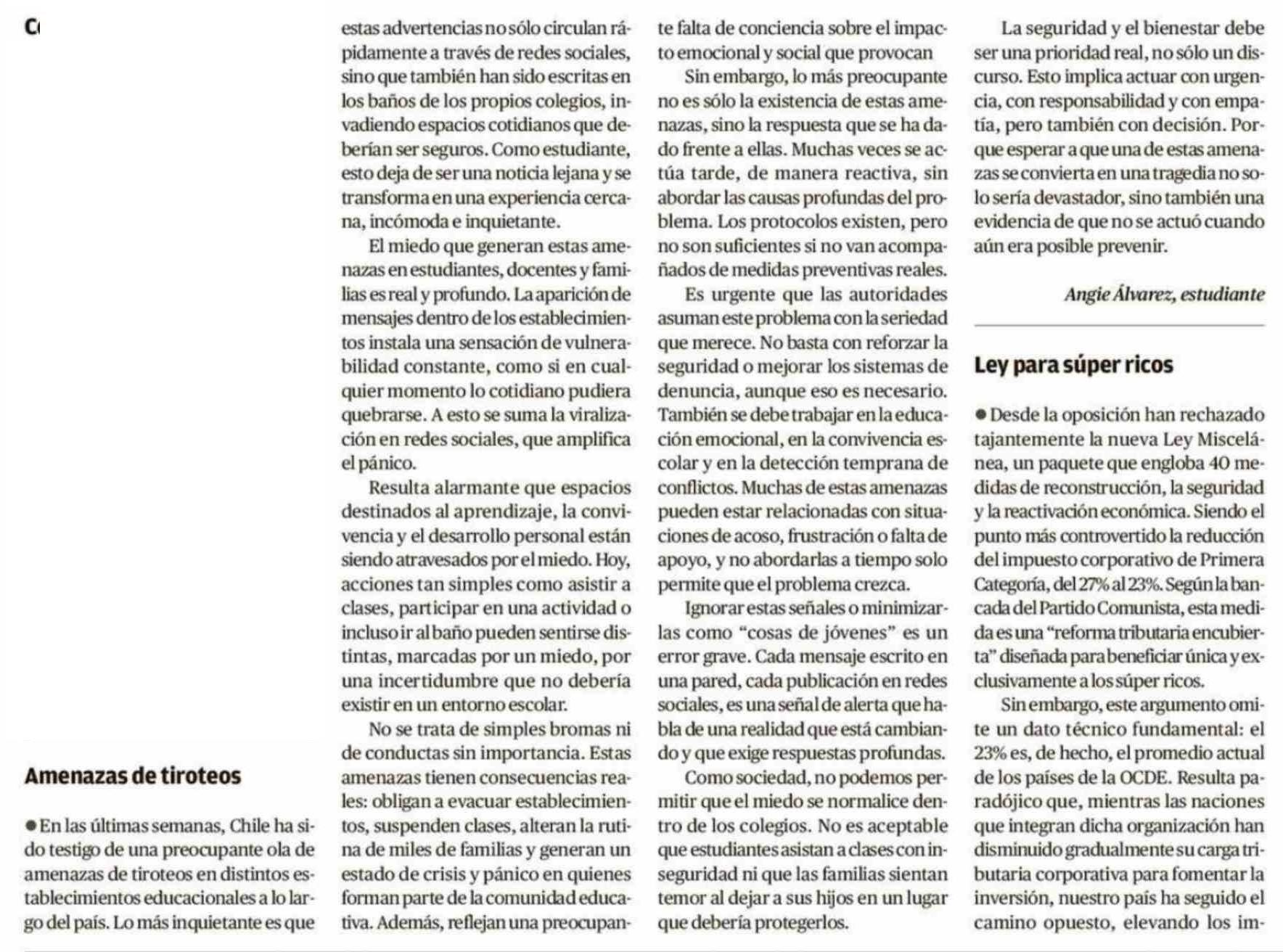 CARTAS: Amenazas de tiroteos 19-04-2026 El Austral de Osorno |
