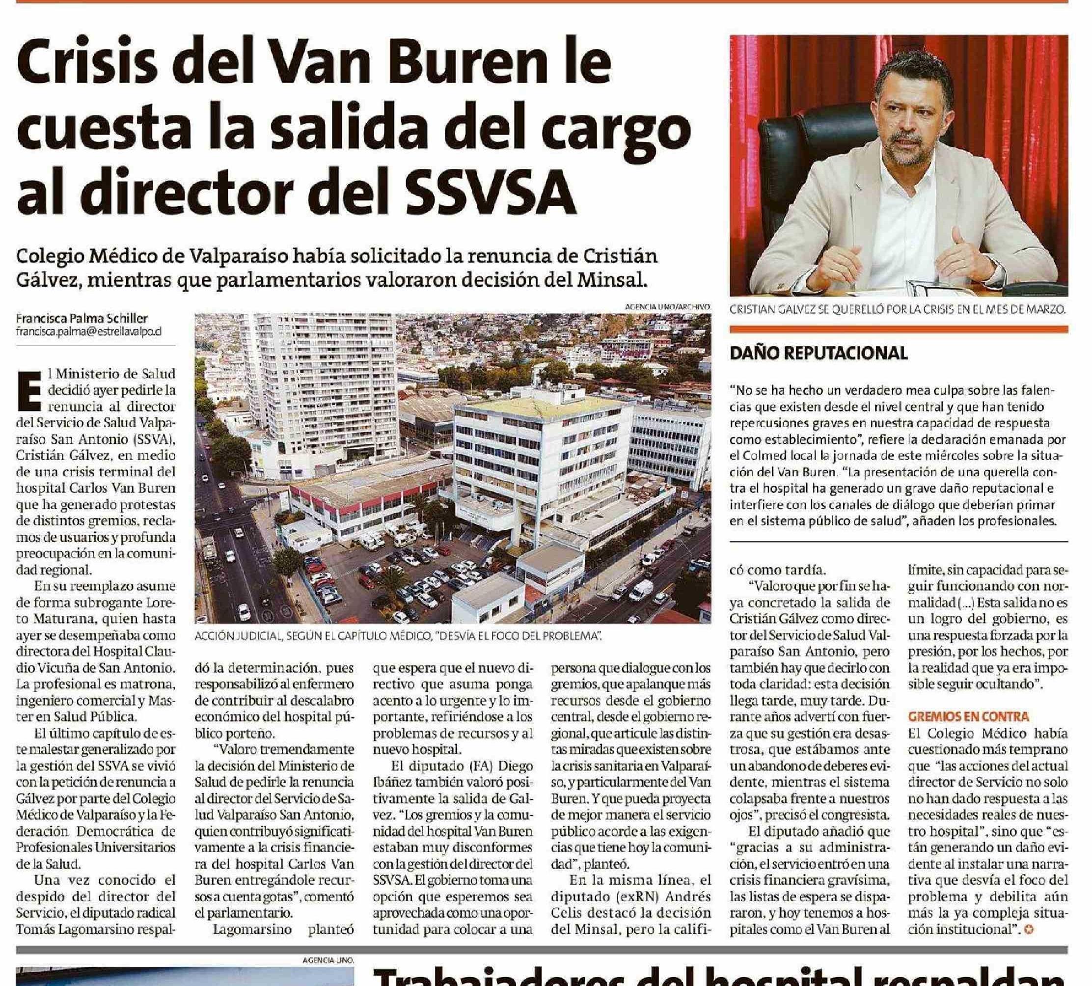 Crisis del Van Buren le al director del SSVSA cuesta la salida del cargo 10-04-2025 La Estrella de Valparaíso |