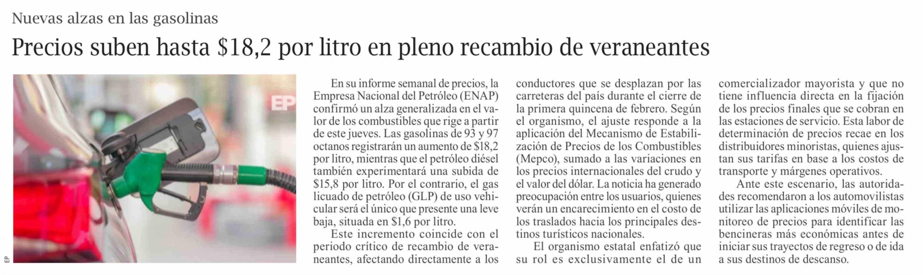 Precios suben hasta $18,2 por litro en pleno recambio de veraneantes 12-02-2026 El Pingüino |