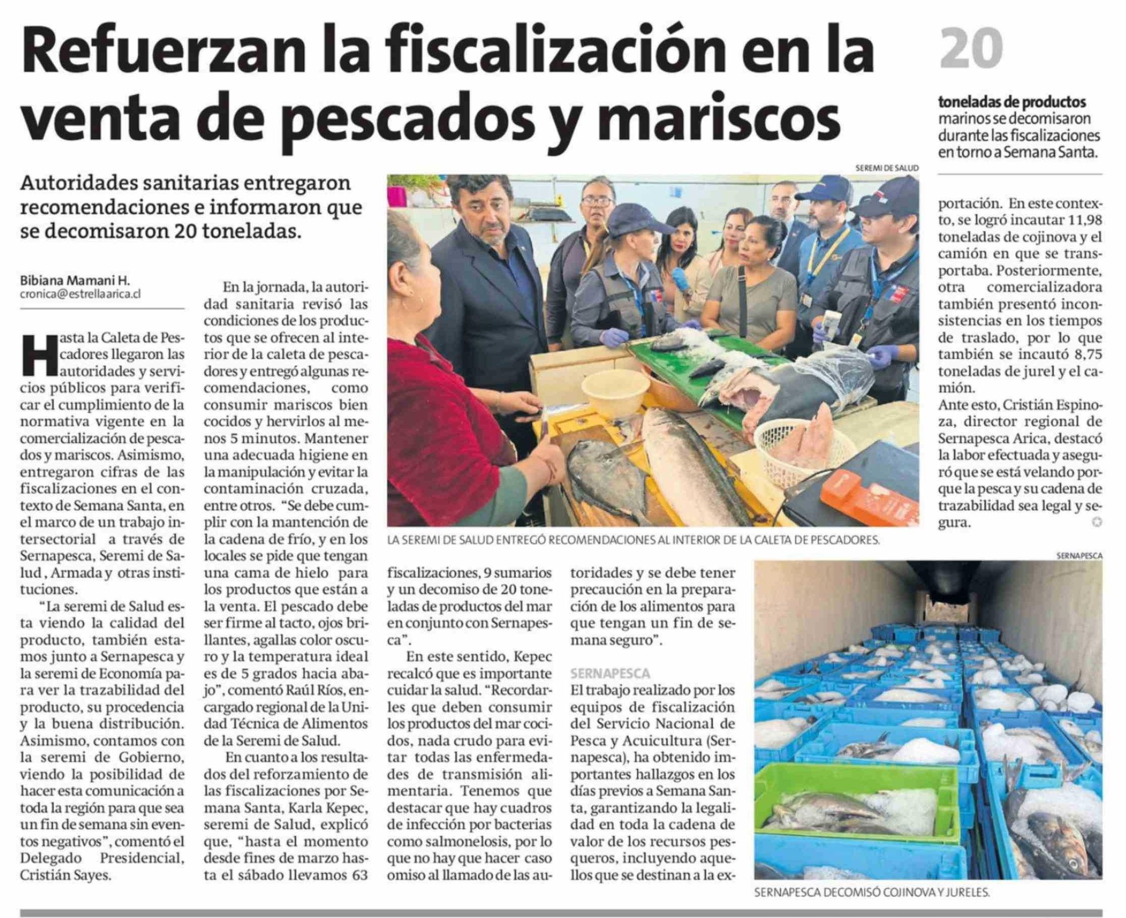 Refuerzan la fiscalización en la venta de pescados y mariscos 03-04-2026 La Estrella de Arica |