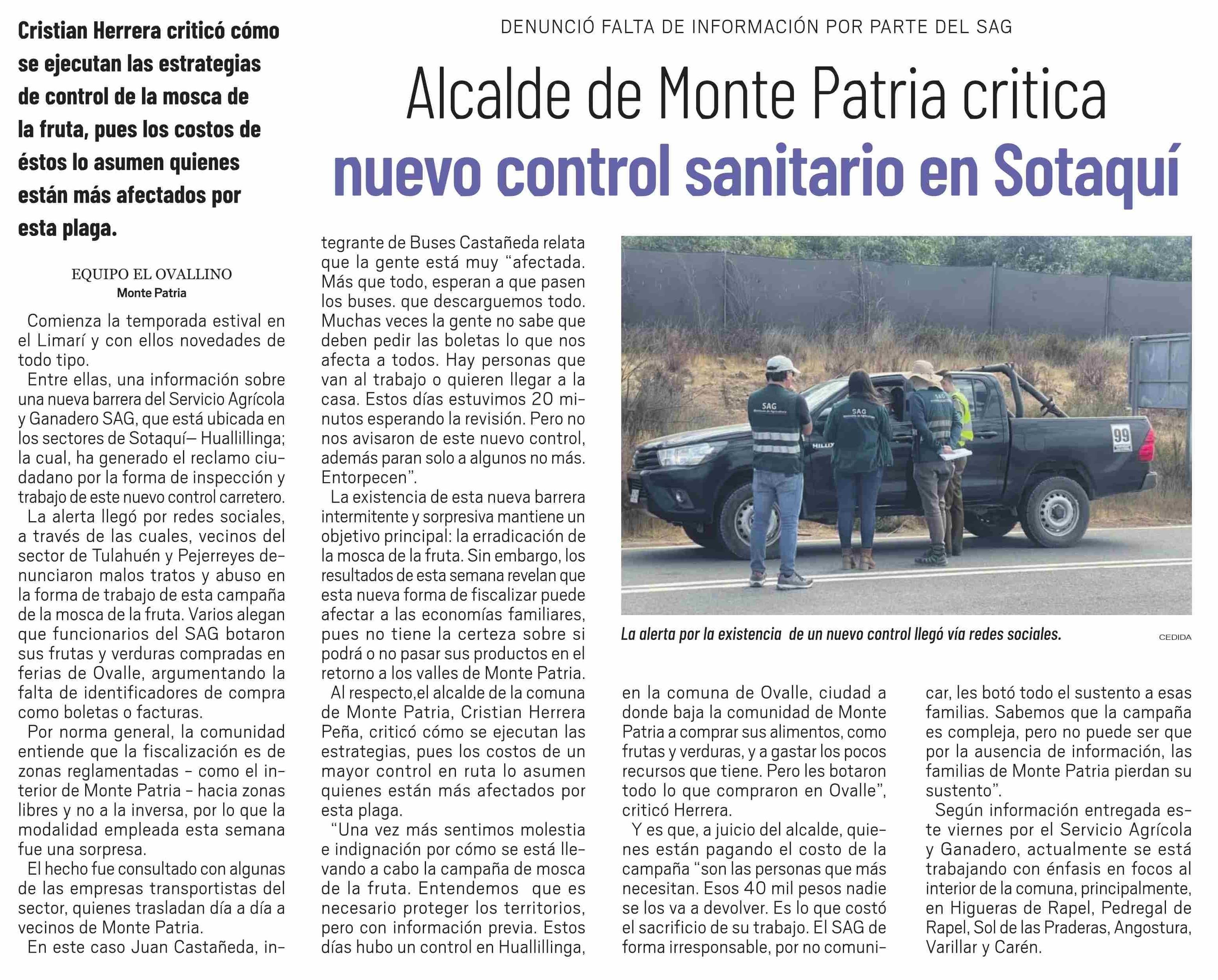 Alcalde de Monte Patria critica nuevo control sanitario en Sotaquí 11-01-2026 El Ovallino |