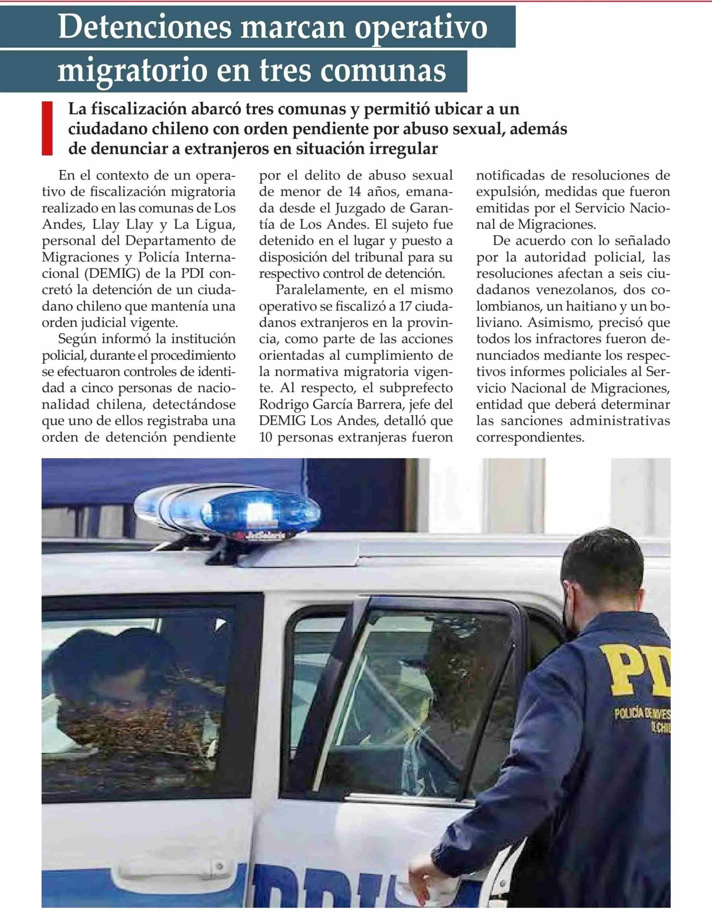Título: Detenciones marcan operativo migratorio en tres comunas