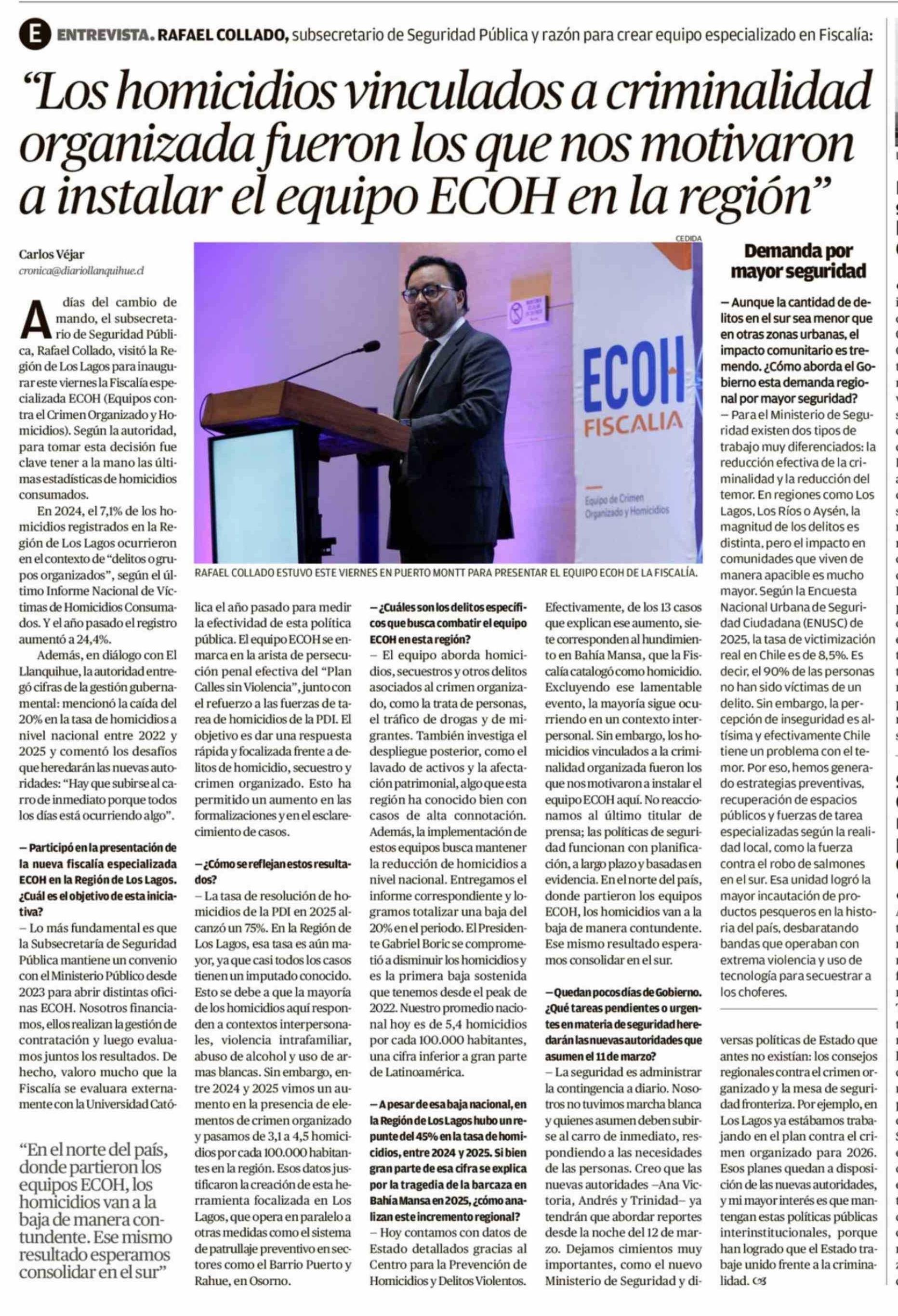 Título: "Los homicidios vinculados a criminalidad organizada fueron los que nos motivaron a instalar el equipo ECOH en la región"