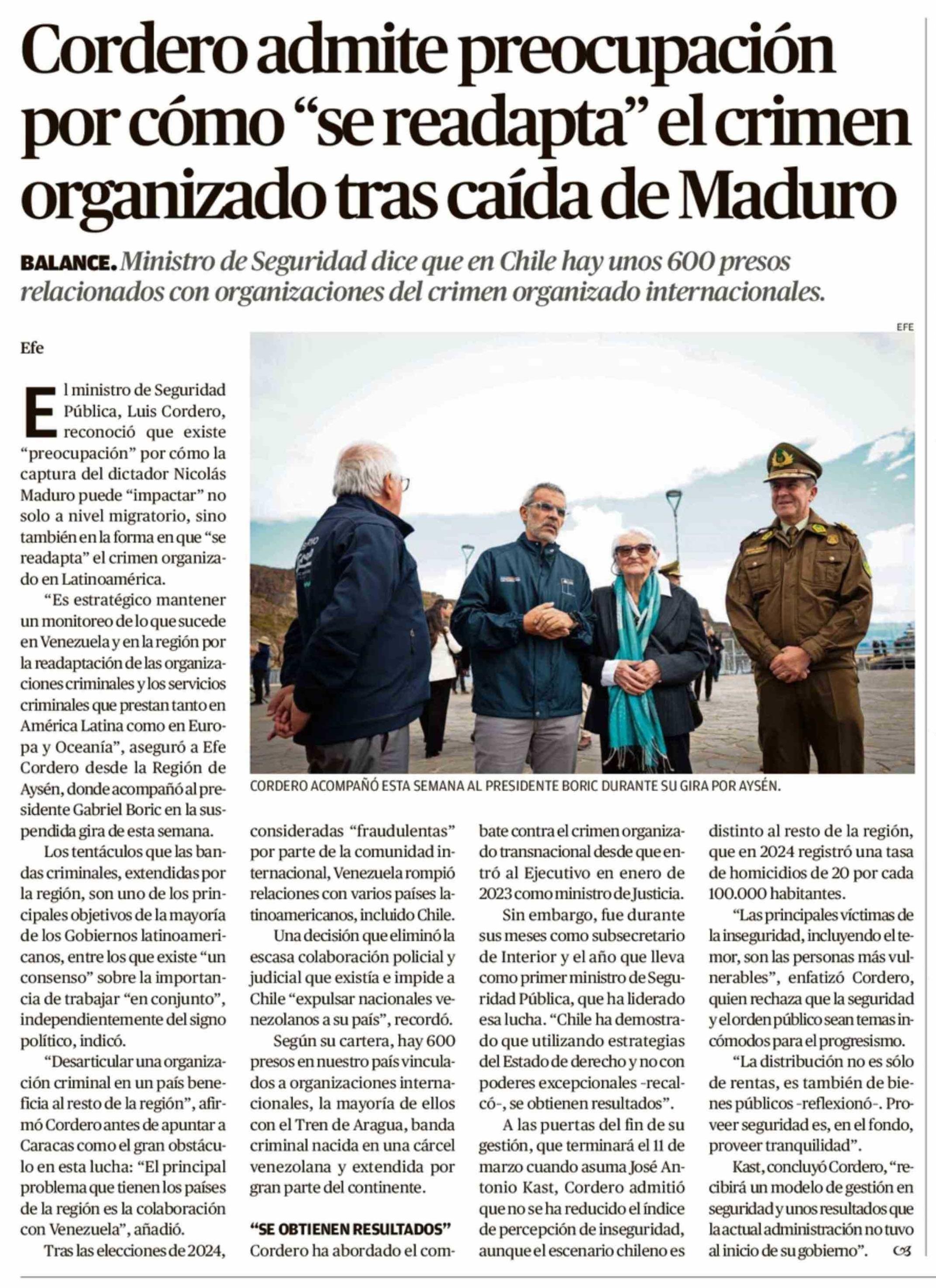 Título: Cordero admite preocupación por cómo "se readapta" el crimen organizado tras caída de Maduro