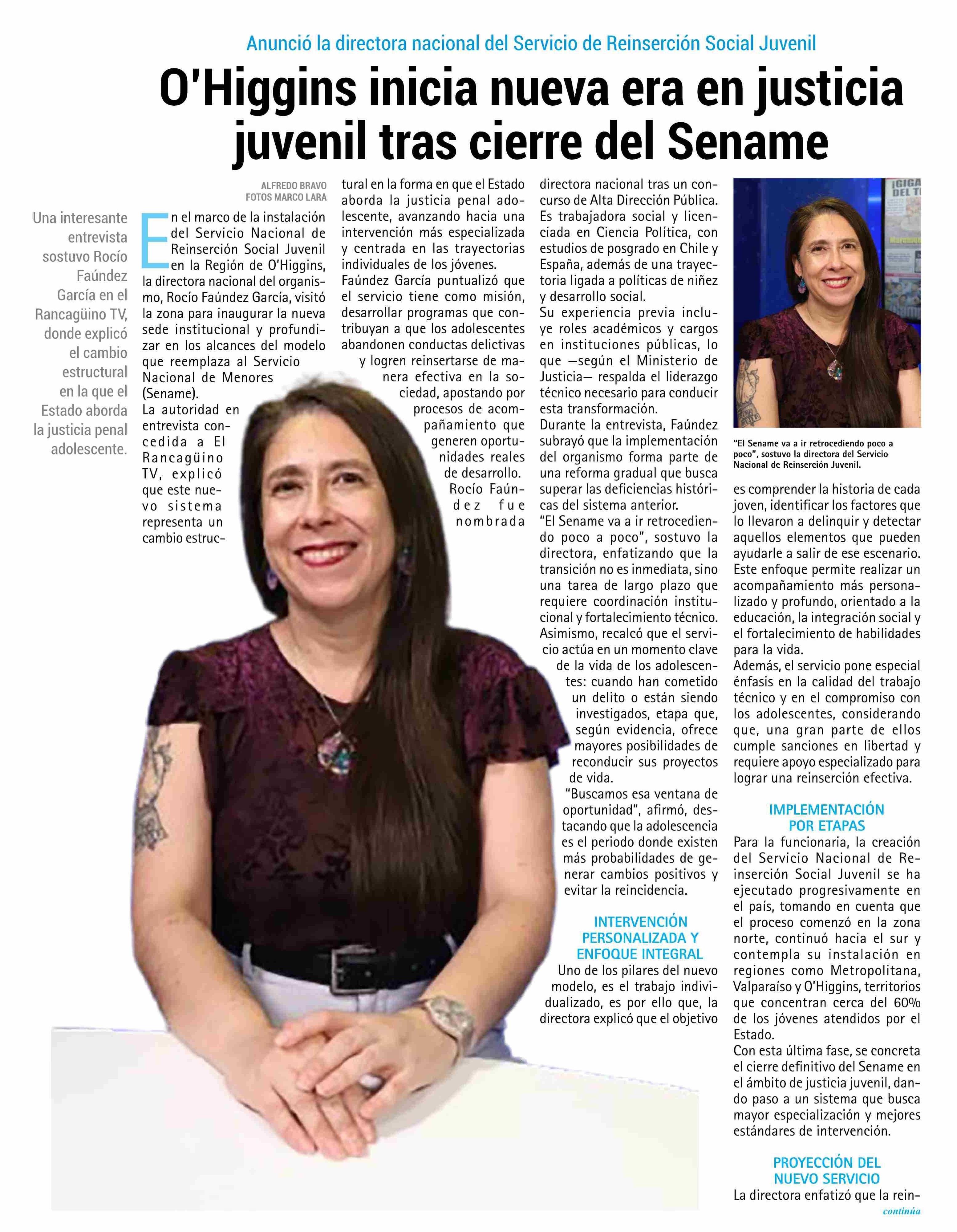 O'Higgins Inicia nueva era en justicia juvenil tras cierre del Sename 09-02-2026 El Rancagüino |