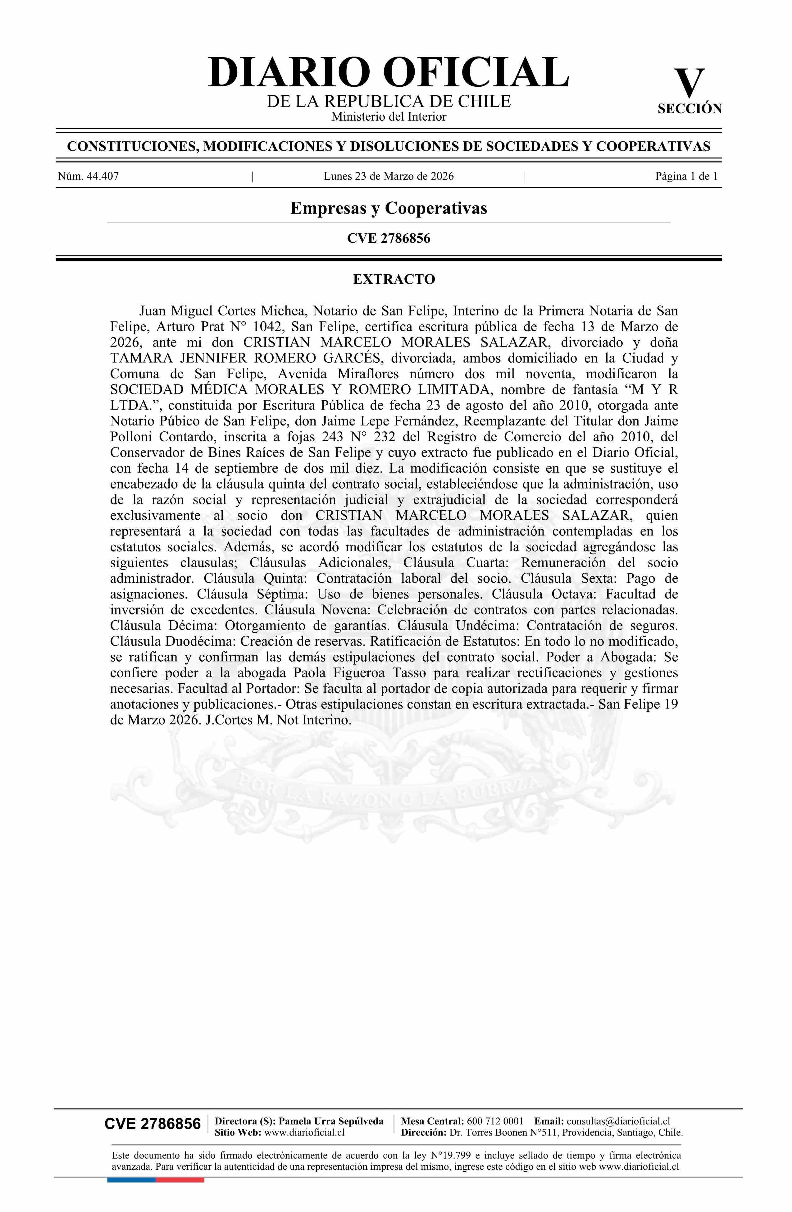 Título: Sociedad Médica Morales y Romero Limitada 76.130.474-7*