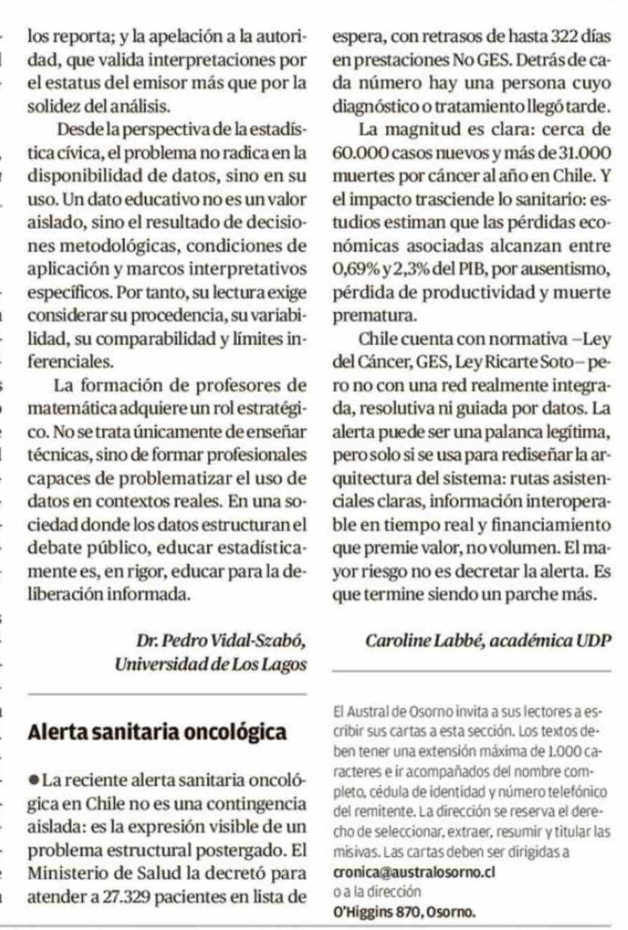 Título: Cartas: Alerta sanitaria oncológica
