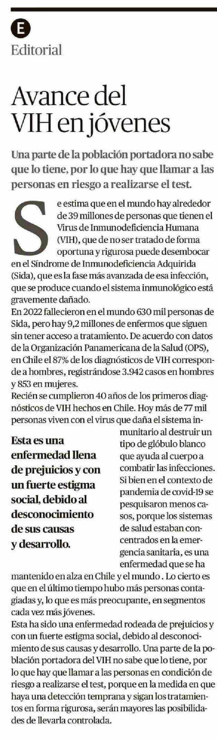 Editorial: Avance del VIH en jóvenes 19-04-2025 El Austral de Osorno |