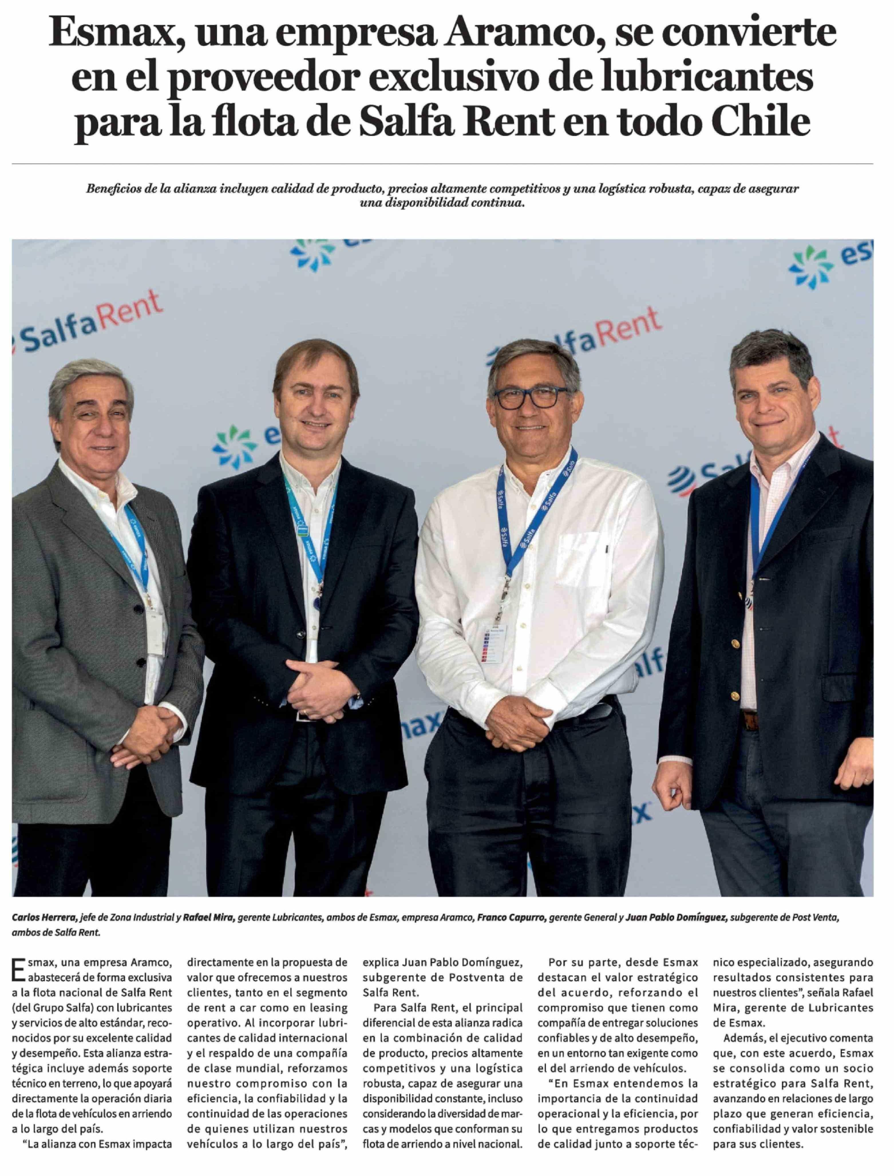 | Título: | Esmax, una empresa Aramco, se convierte en el proveedor exclusivo de lubricantes para la flota de Salfa Rent en todo Chile |