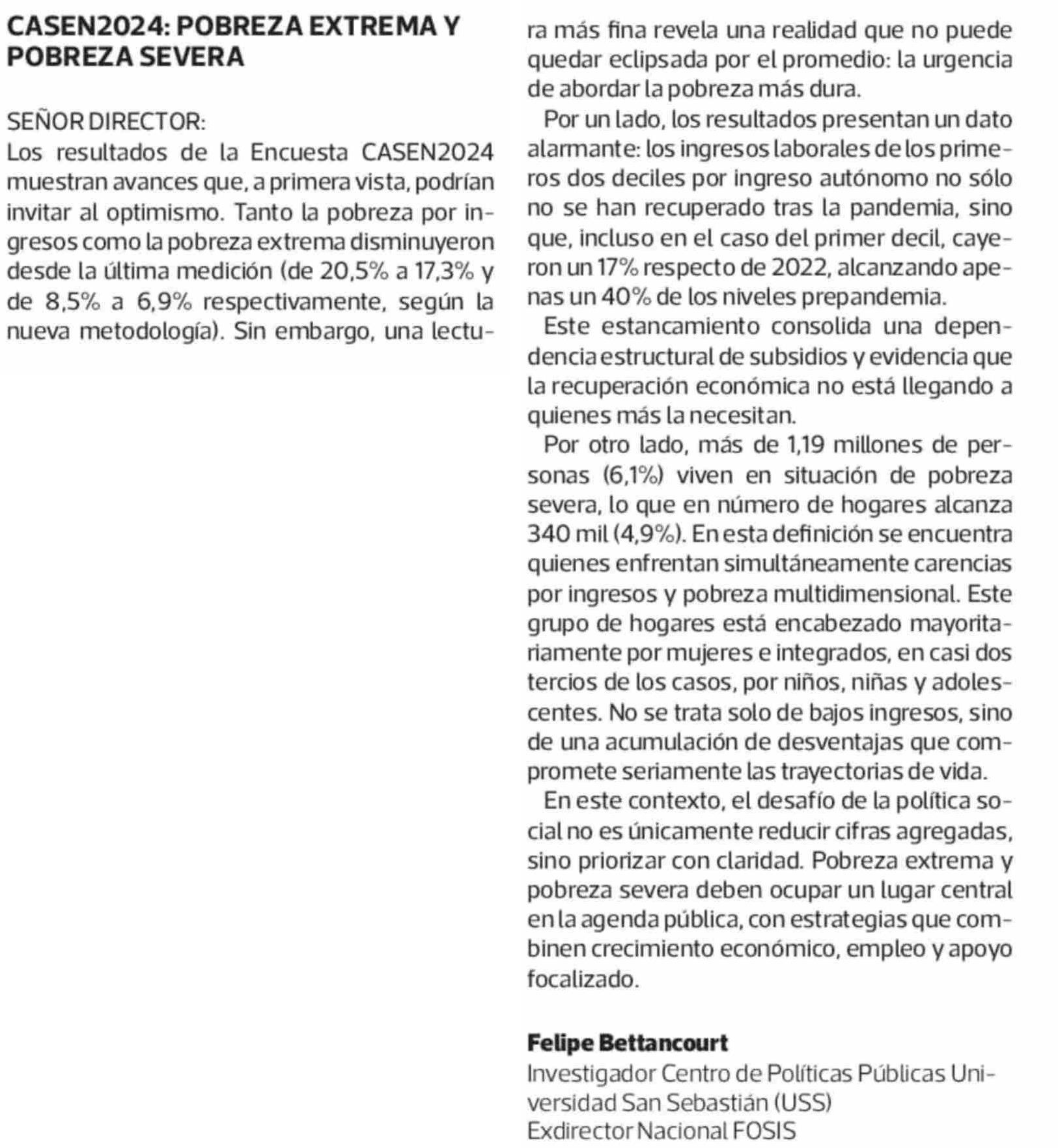 Fecha: 23-01-2026 Sector: Opinión - Cartas Región: Región Metropolitana de Santiago