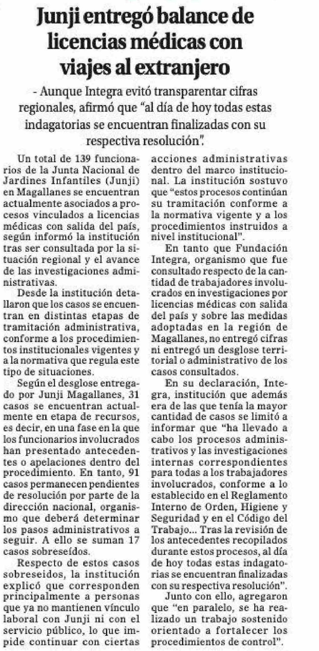 Junji entregó balance de licencias médicas con viajes al extranjero 26-04-2026 El Magallanes |