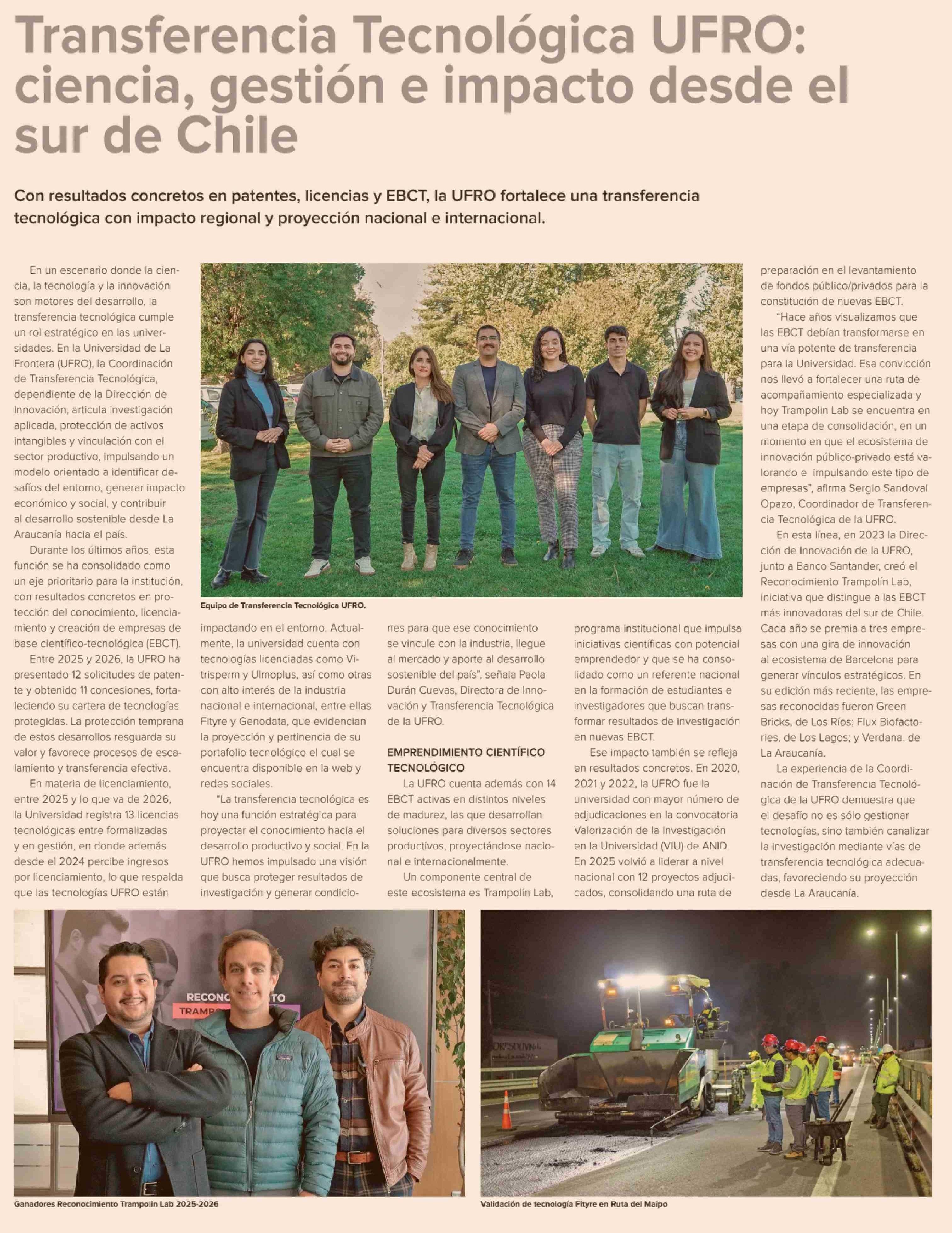 Título: Transferencia Tecnológica UFRO: ciencia, gestión e impacto desde el sur de Chile