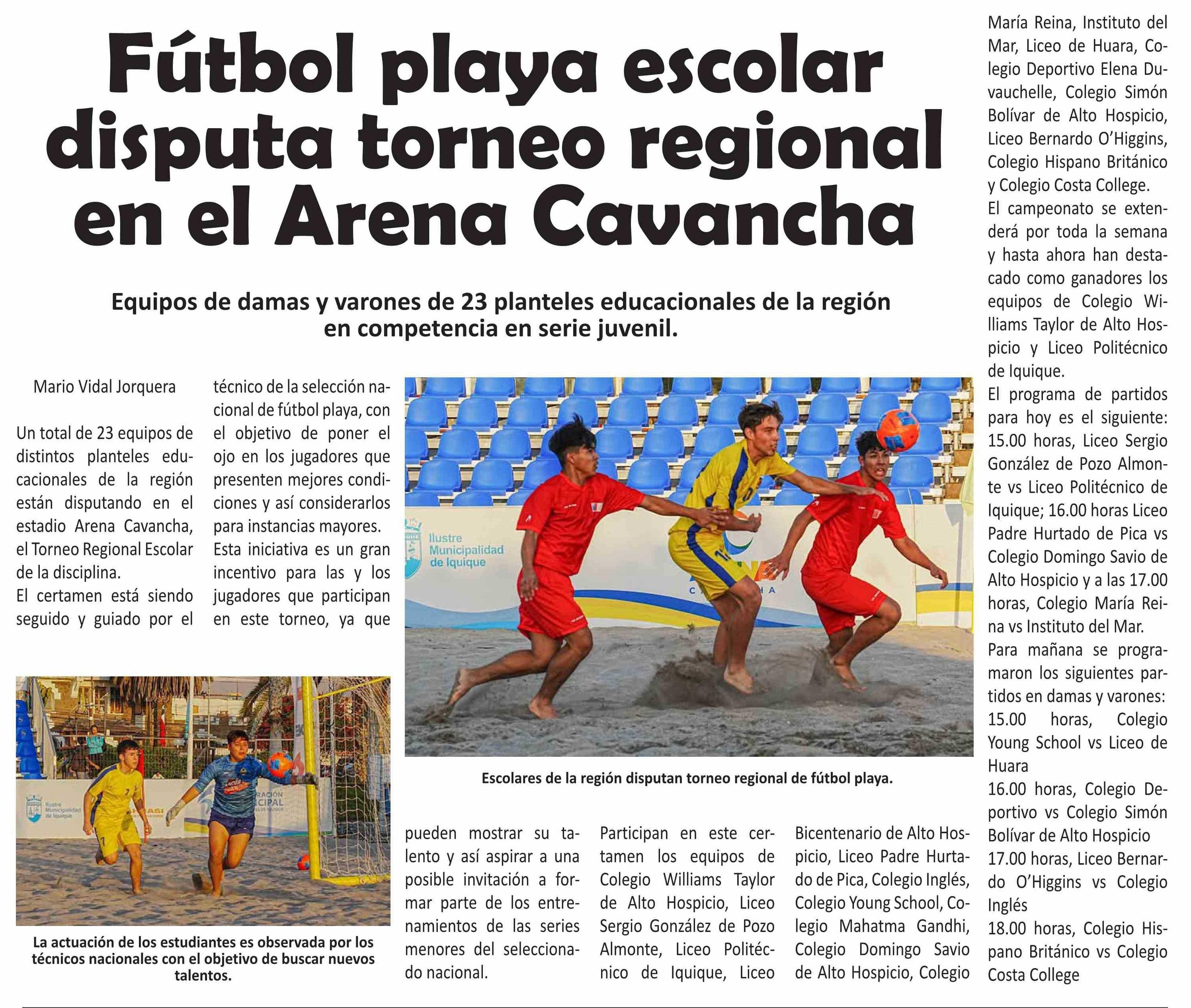 | Título: | Fútbol playa escolar disputa torneo regional en el Arena Cavancha |