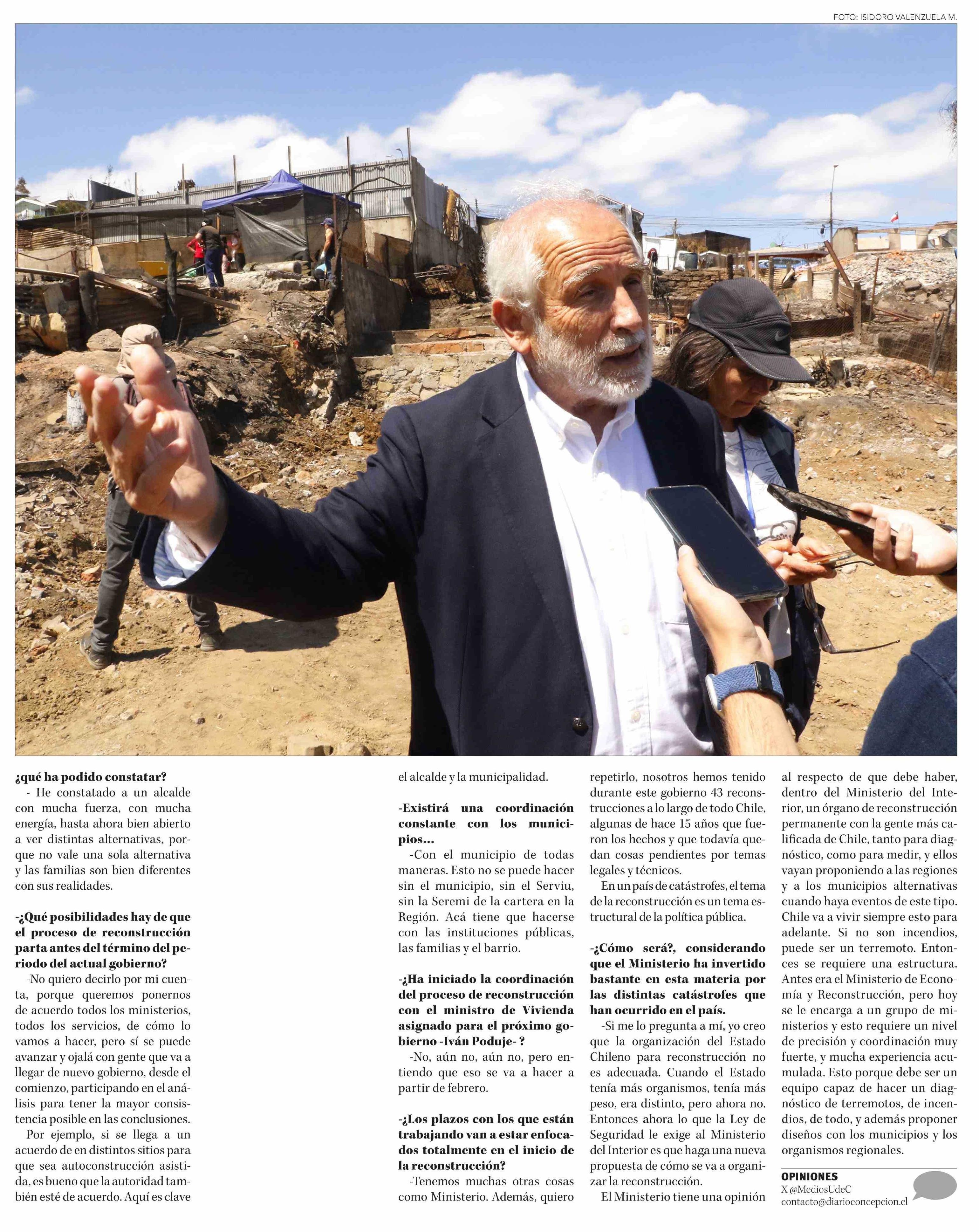 Ministro de Vivienda propone creación de organismo público dedicado exclusivamente a reconstrucciones 26-01-2026 Diario Concepción |