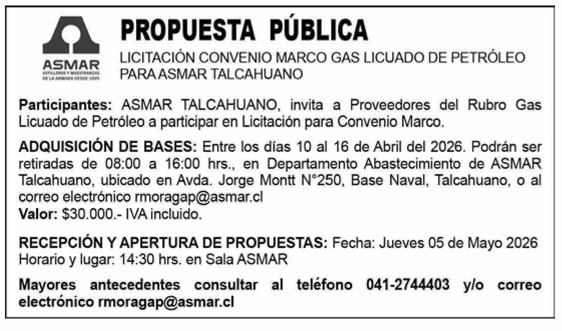Título: AVISO LICITACIONES: ASMAR TALCAHUANO