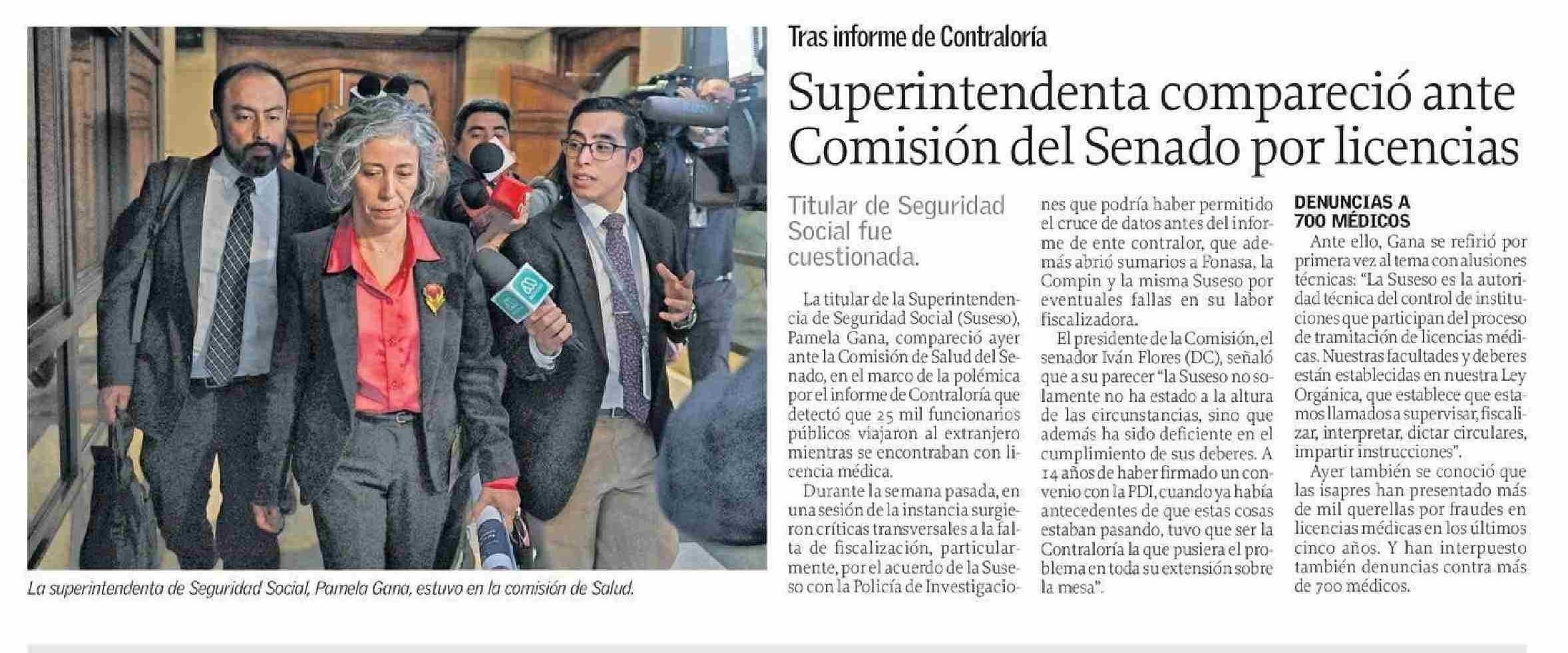 | Título: | Superintendenta compareció ante Comisión del Senado por licencias |