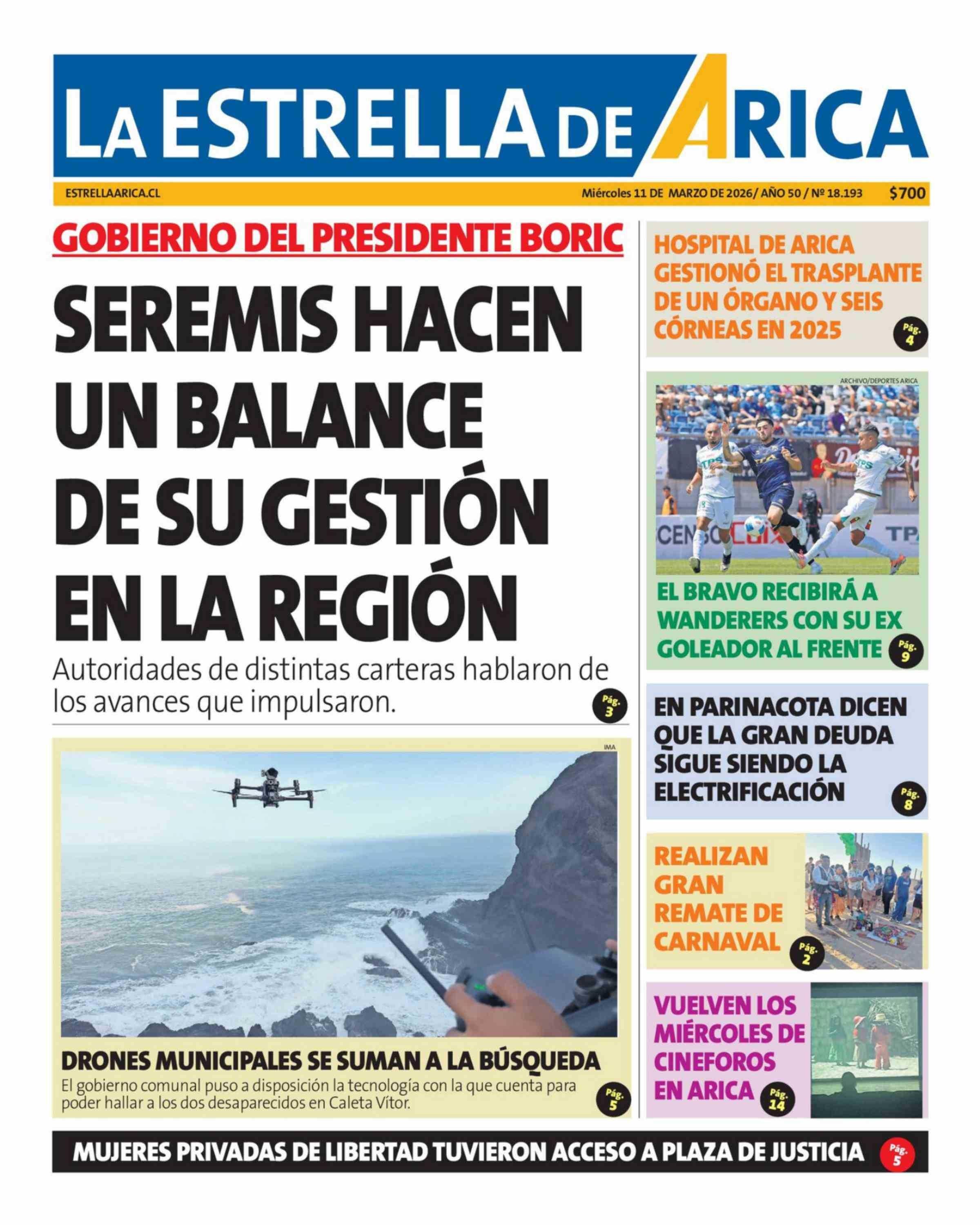 Fecha: 11-03-2026 Sector: Portada Región: Región de Arica y Parinacota