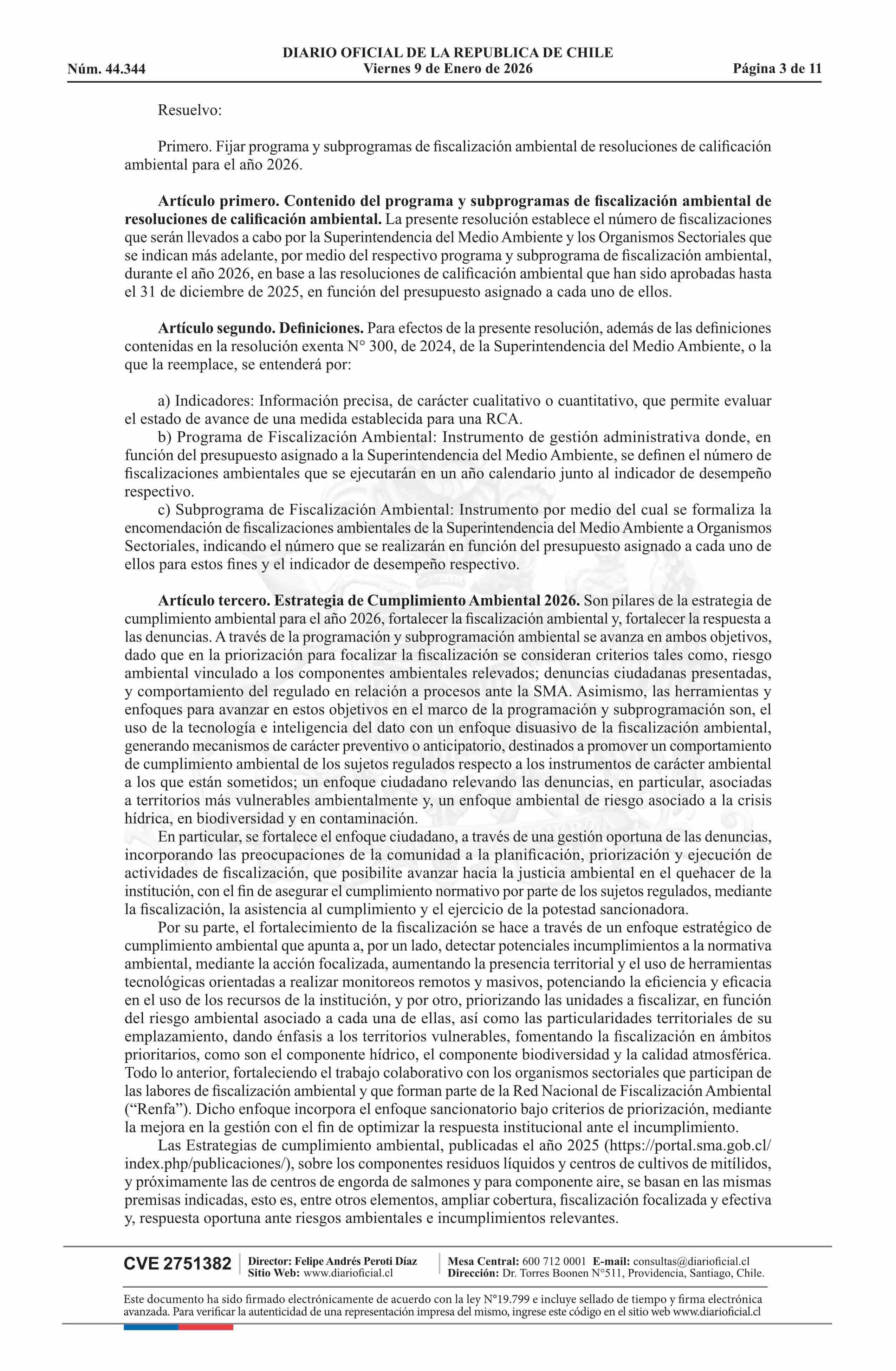 Título: AVISO LICITACIONES: Resolución exenta número 2.999, de 2025.- Fija programa y subprogramas de fiscalización ambiental de resoluciones de calificación ambiental para el año 2026