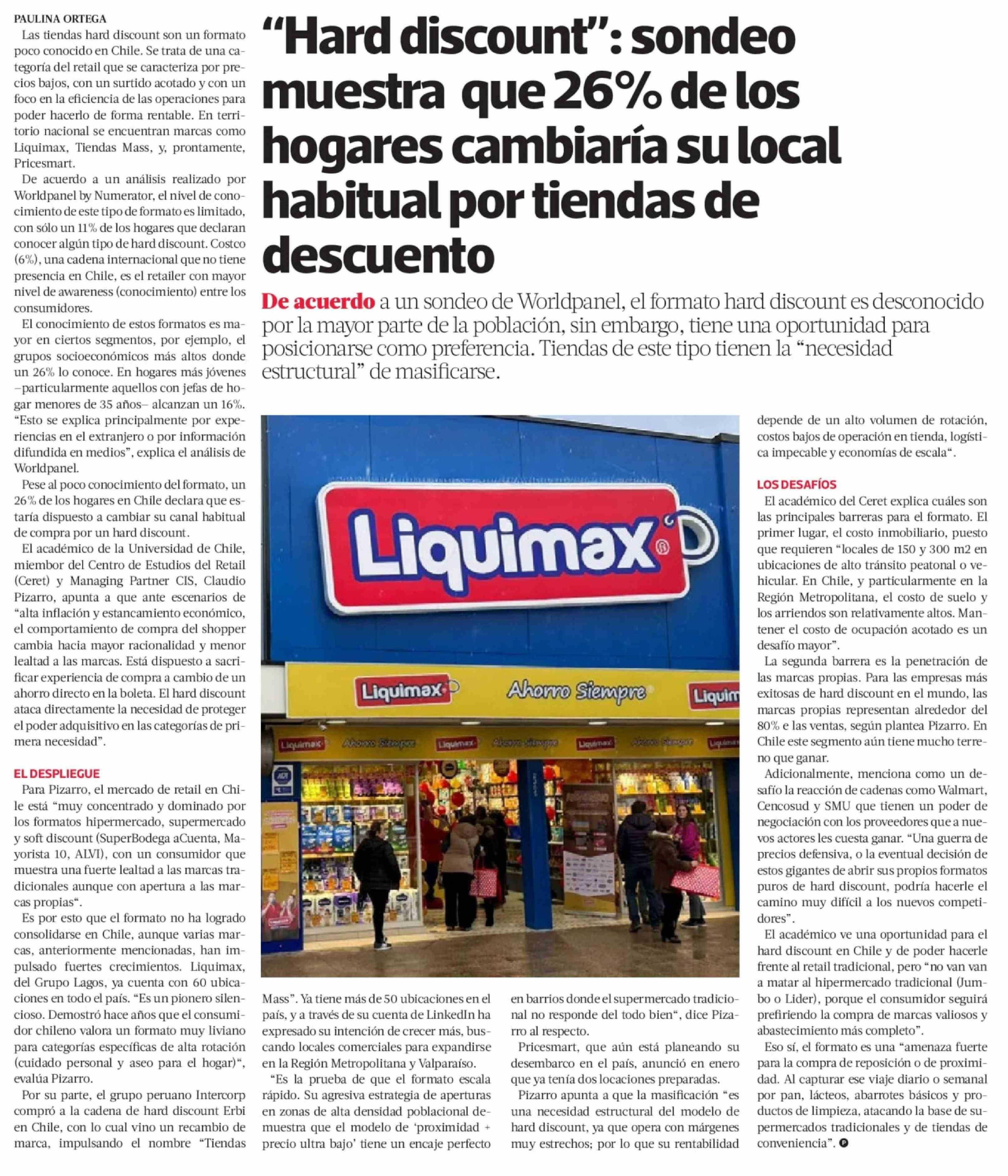 "Hard discount": sondeo muestra que 26% de los hogares cambiaría su local habitual por tiendas de descuento 06-04-2026 La Tercera |