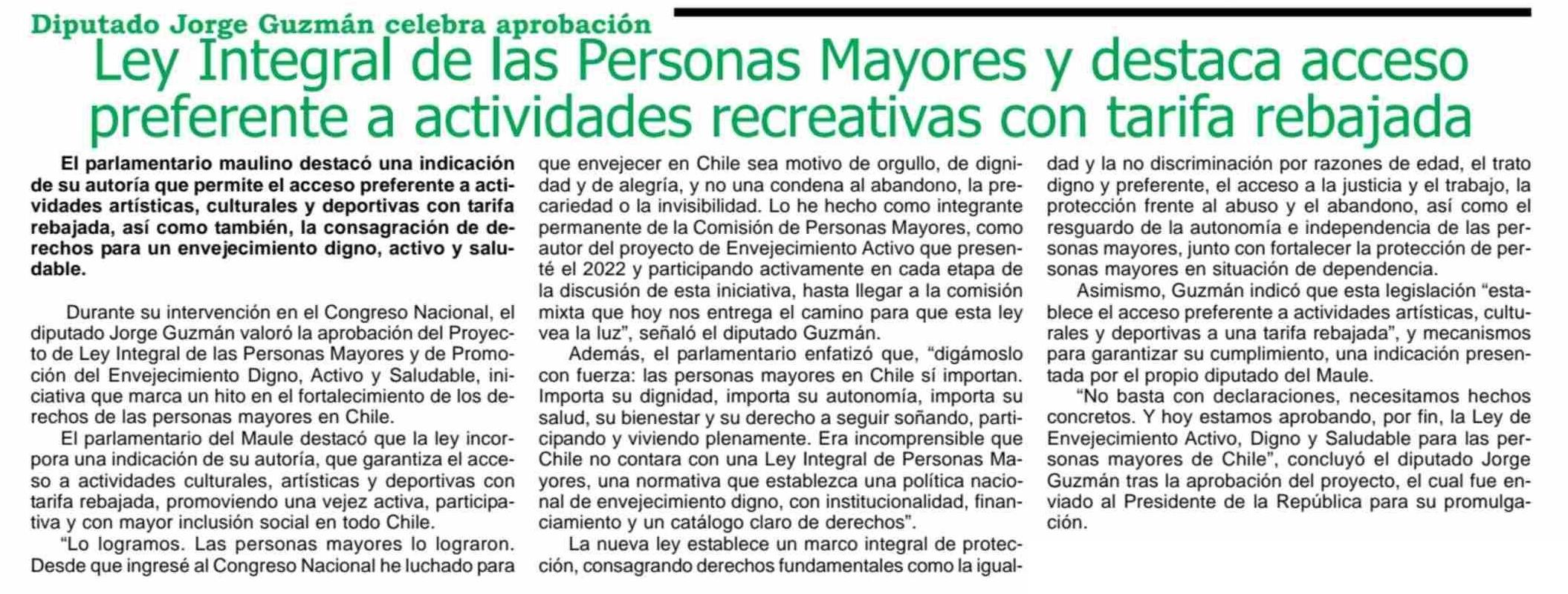 Ley Personas Mayores y destaca acceso preferente a actividades con tarifa rebajada 08-01-2026 Maule Hoy |