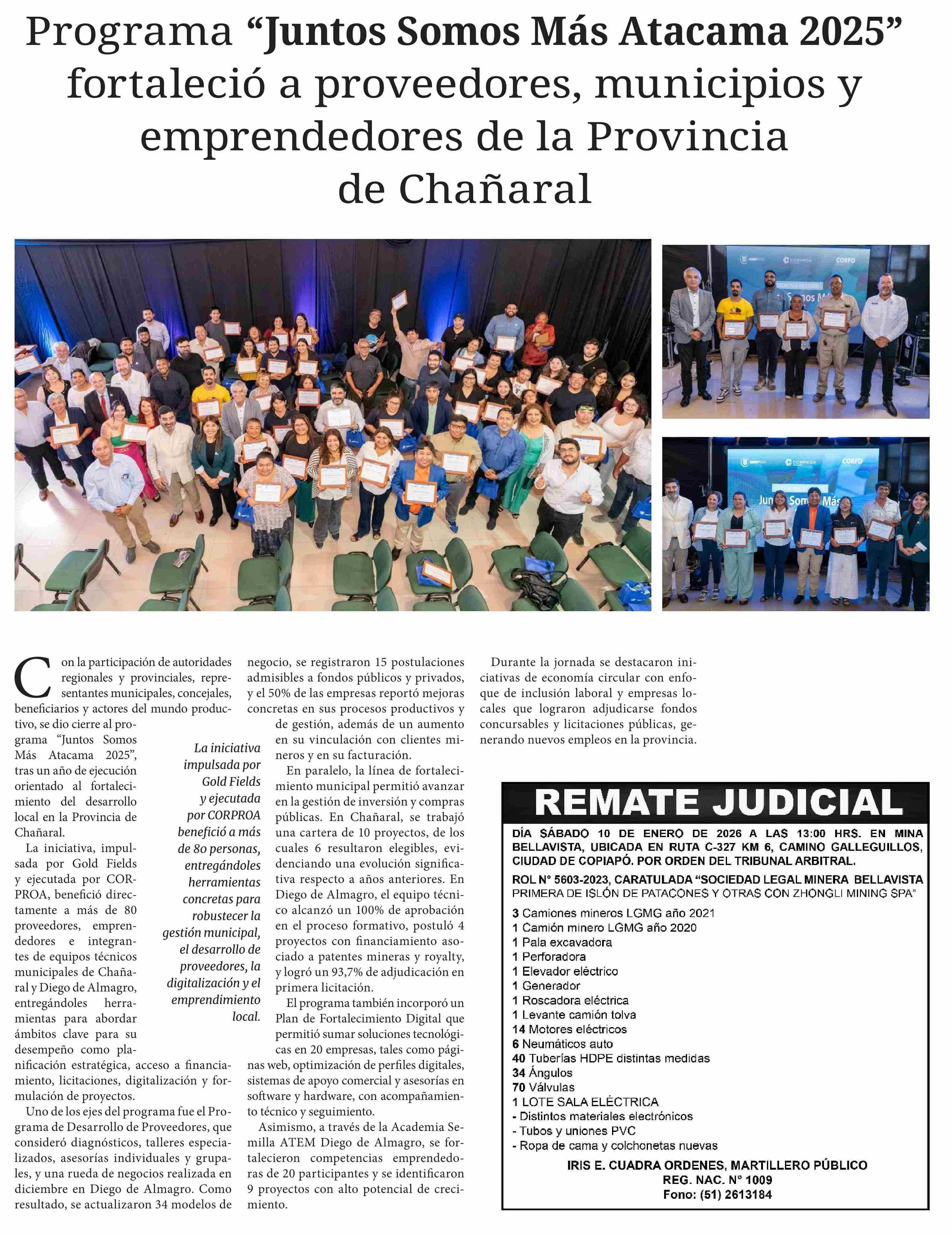 Título: Programa "Juntos Somos Más Atacama 2025" fortaleció a proveedores, municipios y emprendedores de la Provincia de Chañaral