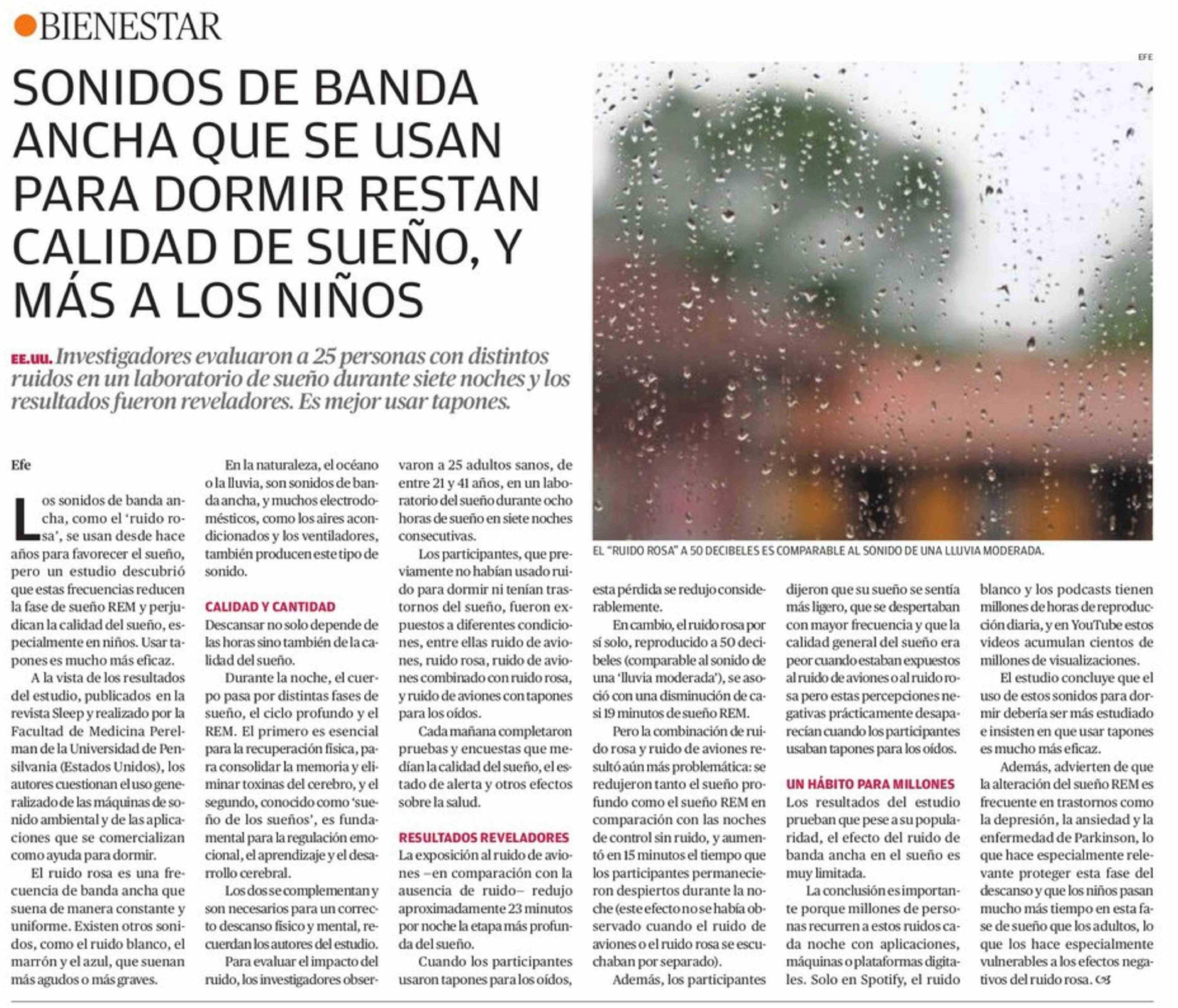 Título: SONIDOS DE BANDA ANCHA QUE SE USAN PARA DORMIR RESTAN CALIDAD DE SUEÑO, Y MÁS A LOS NIÑOS