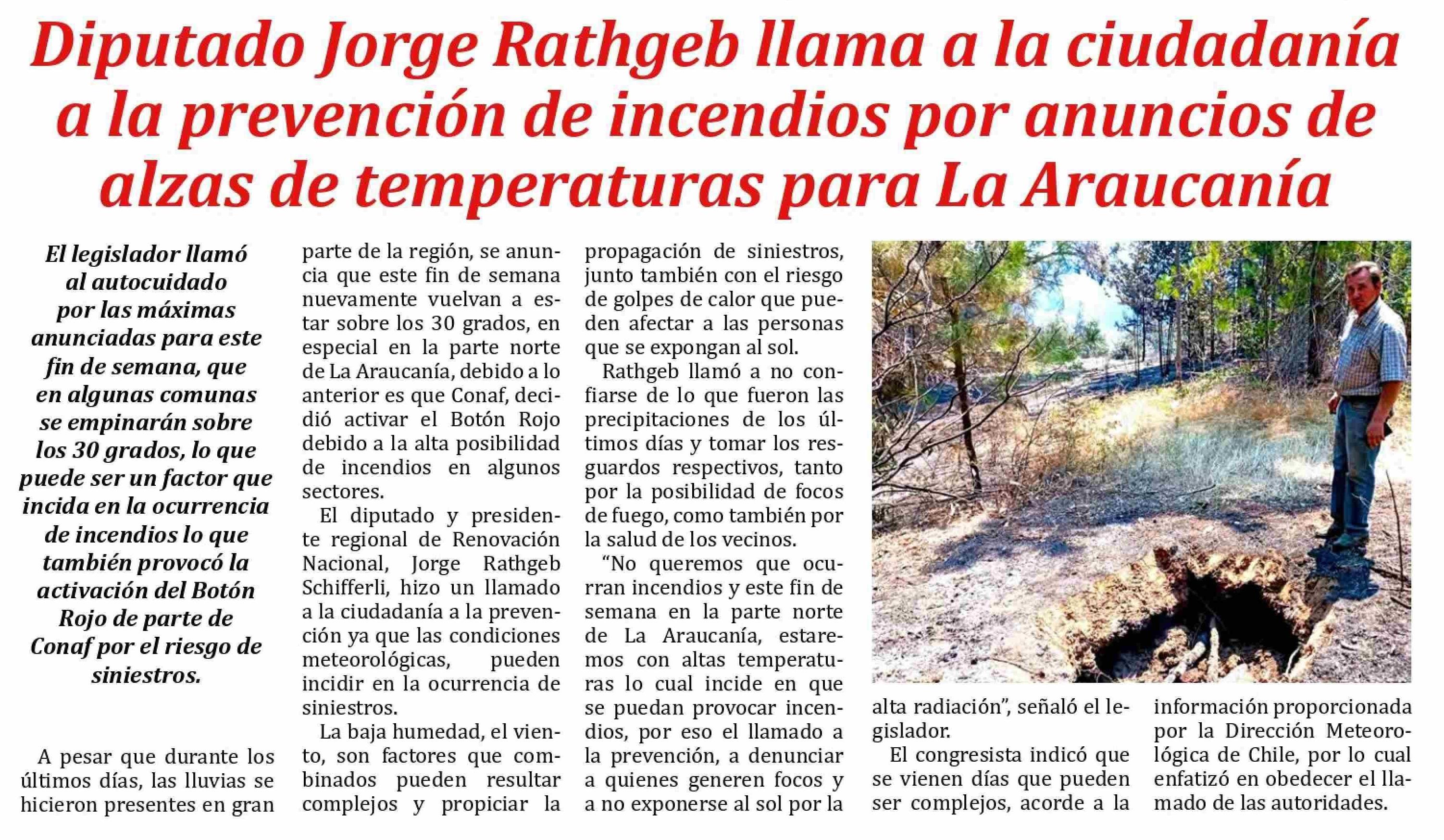 Título: Diputado Jorge Rathgeb llama a la ciudadanía a la prevención de incendios por anuncios de alzas de temperaturas para La Araucanía