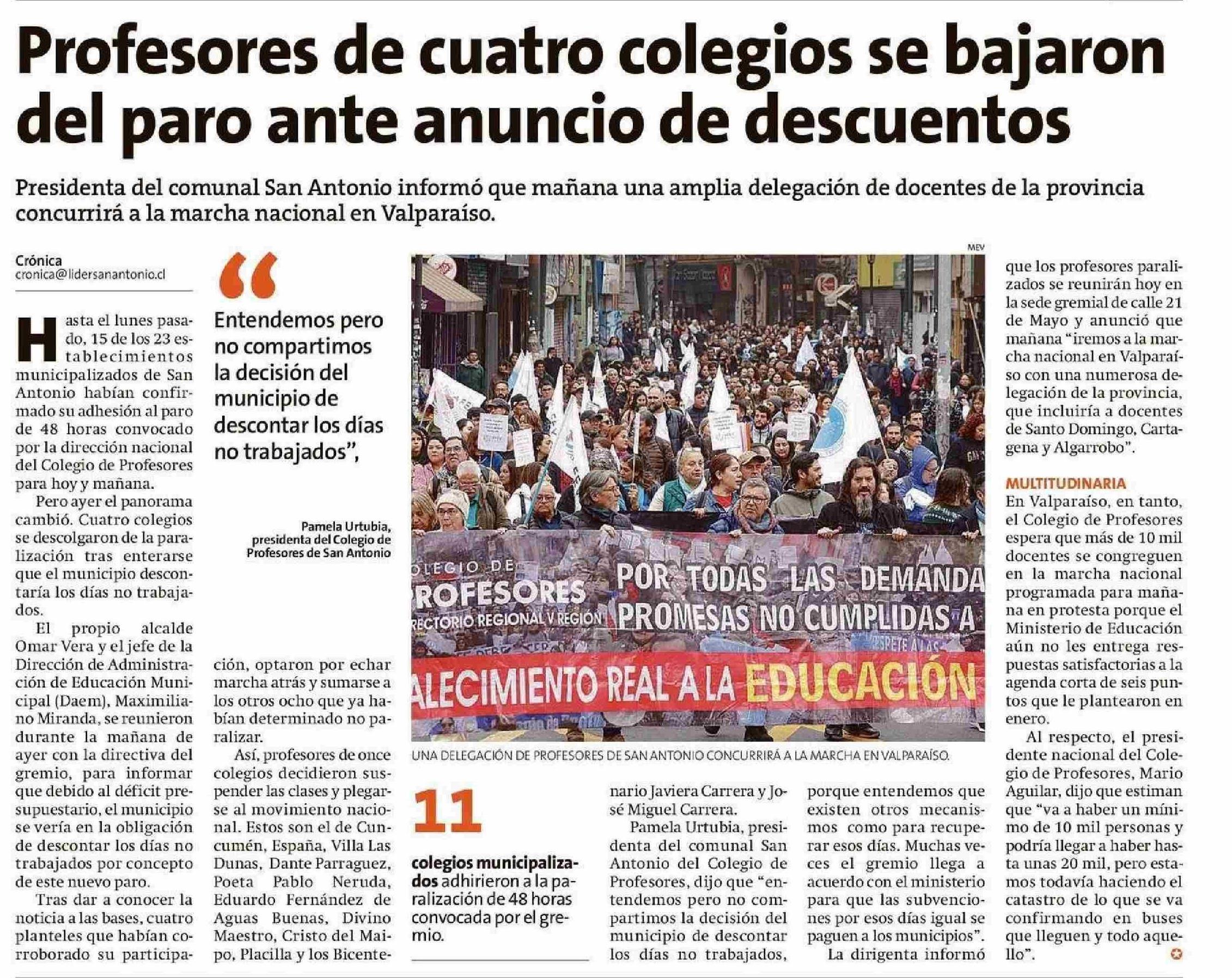 Profesores de cuatro colegios se bajaron del paro ante anuncio de descuentos 04-06-2025 El Líder |