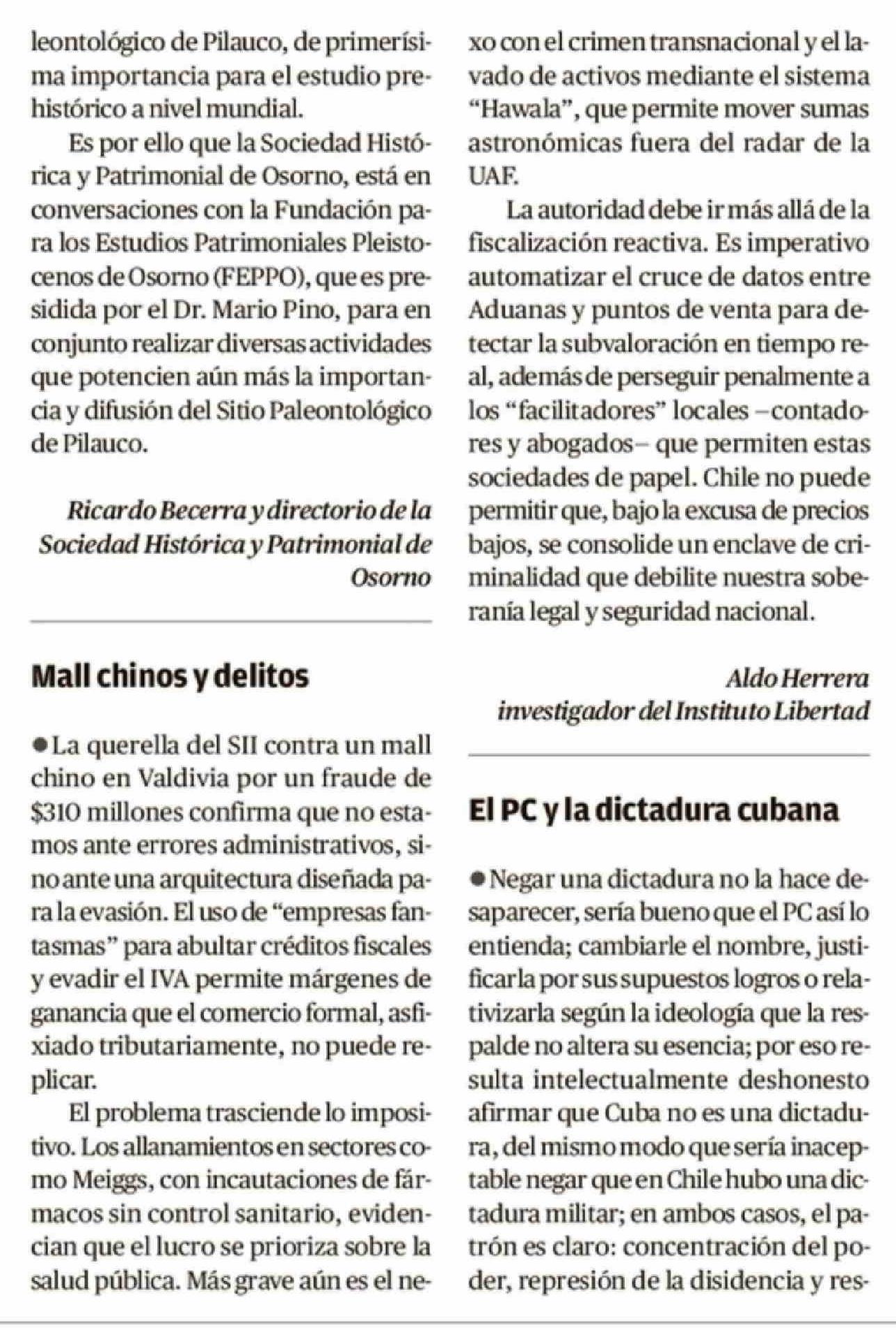 Cartas: Mall chinos y delitos 13-02-2026 El Austral de Osorno |
