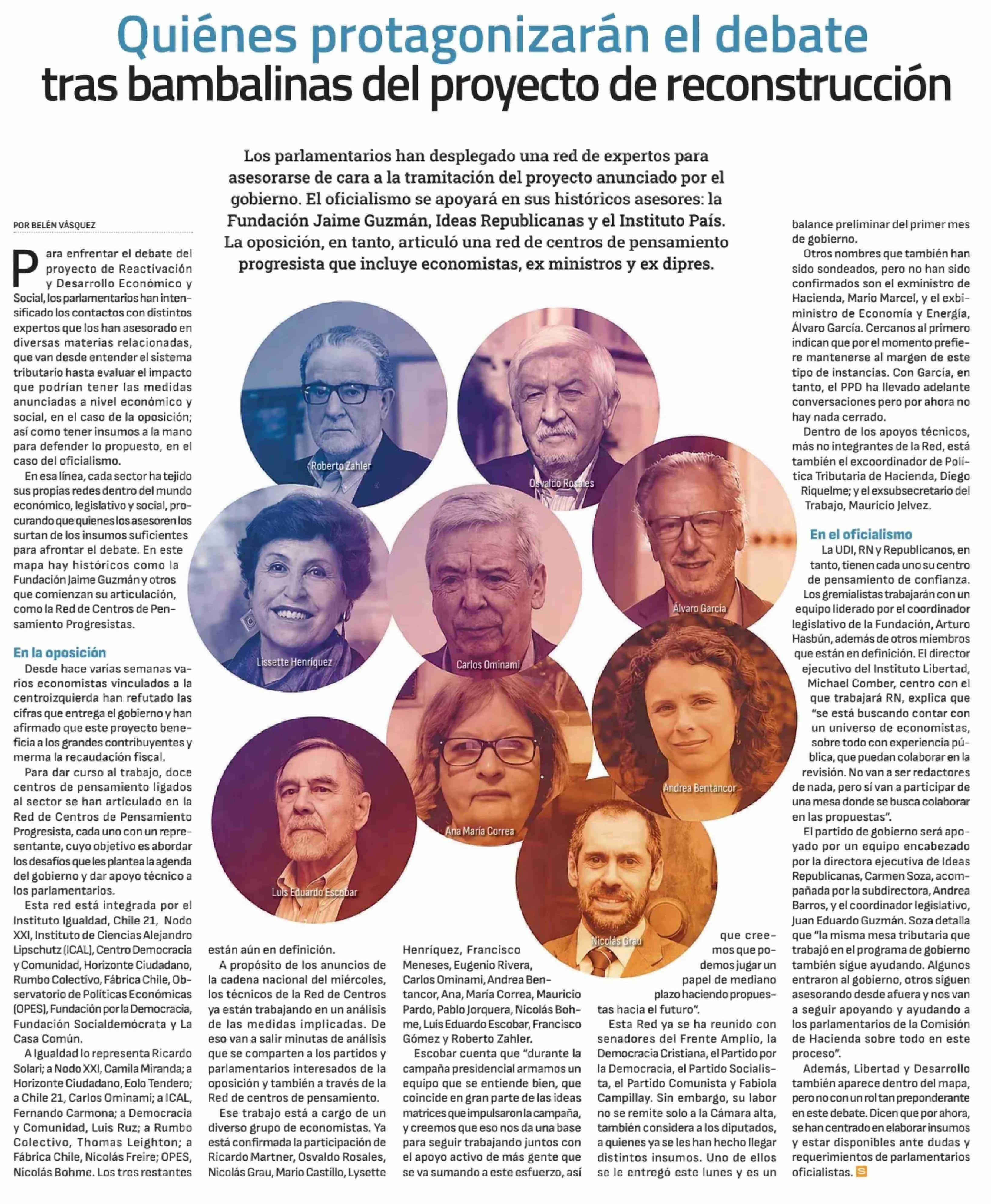 | Título: | Quiénes protagonizarán el debate tras bambalinas del proyecto de reconstrucción |
