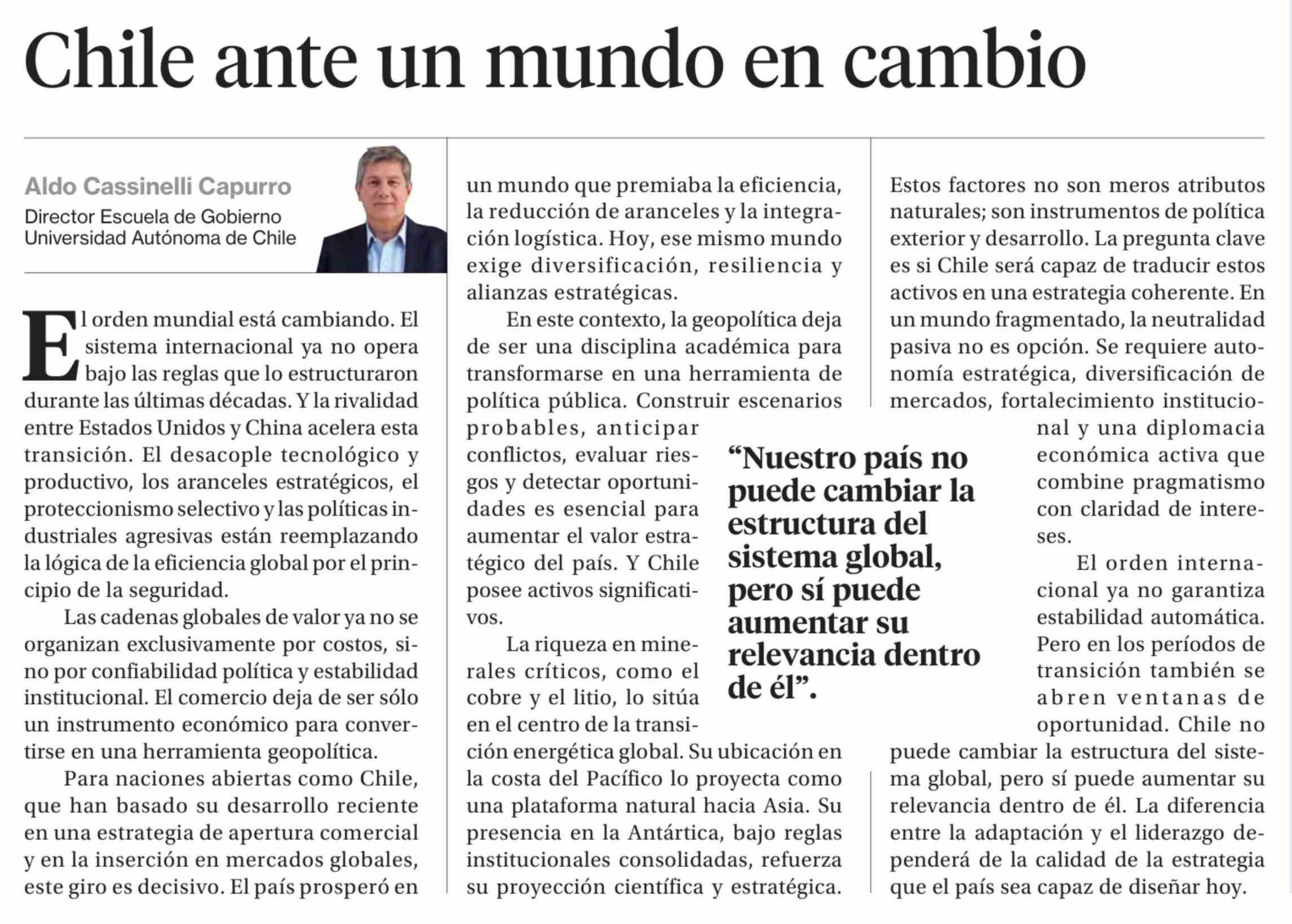 Columnas de Opinión: Chile ante un mundo en cambio 05-03-2026 La Segunda |