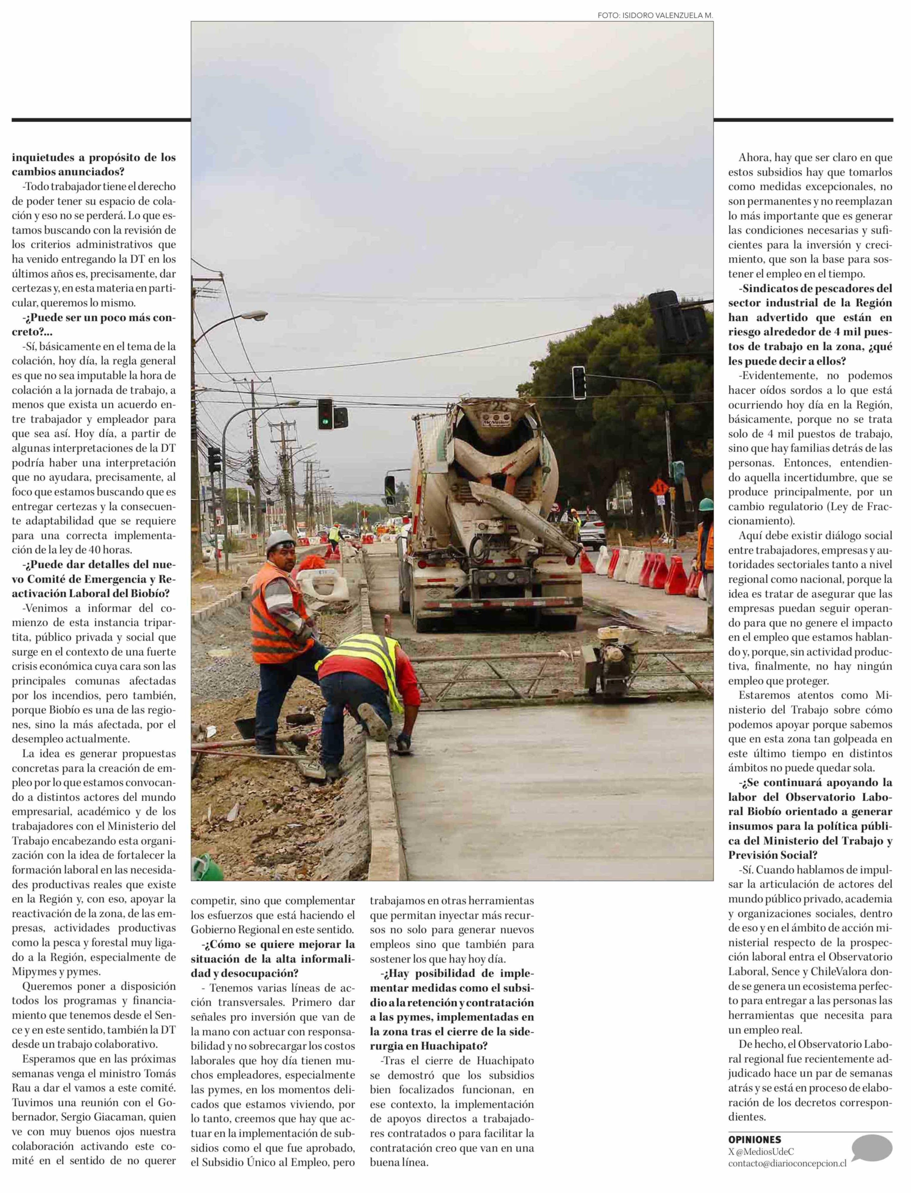 Subsecretario del Trabajo anunció creación de nuevo Comité de Emergencia y Reactivación Laboral para el Biobío 27-03-2026 Diario Concepción |