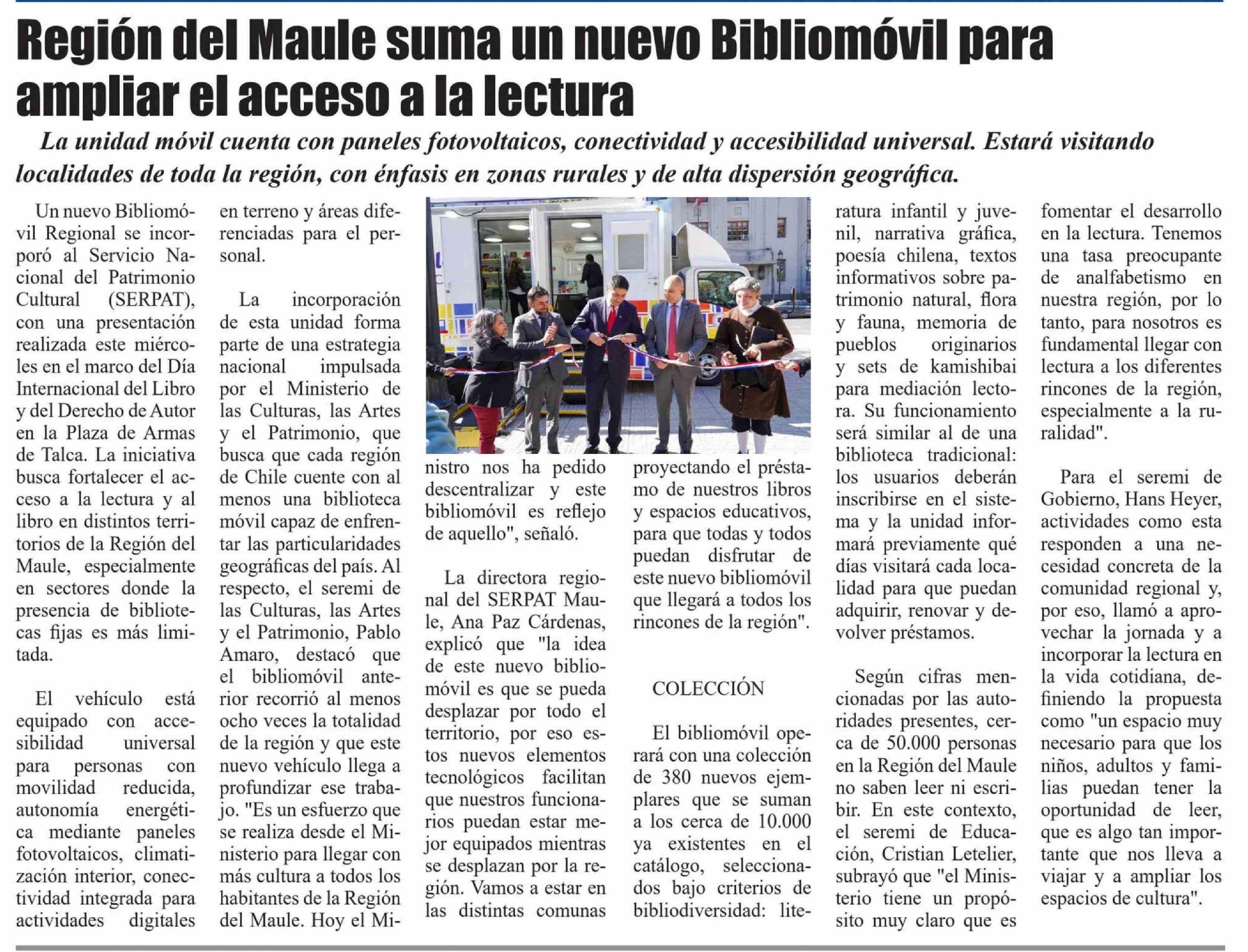 Título: Región del Maule suma un nuevo Bibliomóvil para ampliar el acceso a la lectura
