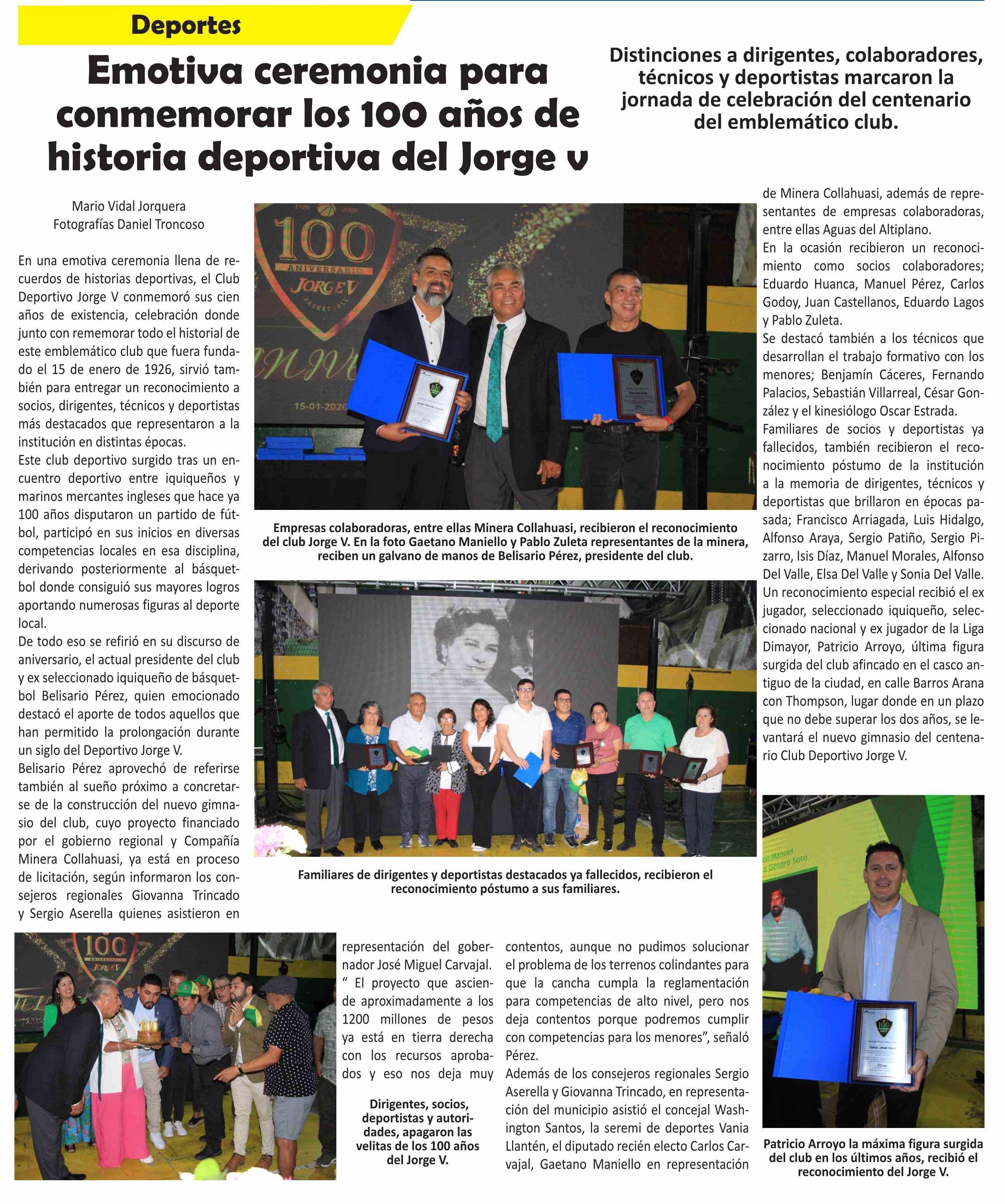 Emotiva ceremonia para conmemorar los 100 años de historia deportiva del Jorge v 17-01-2026 El Longino |