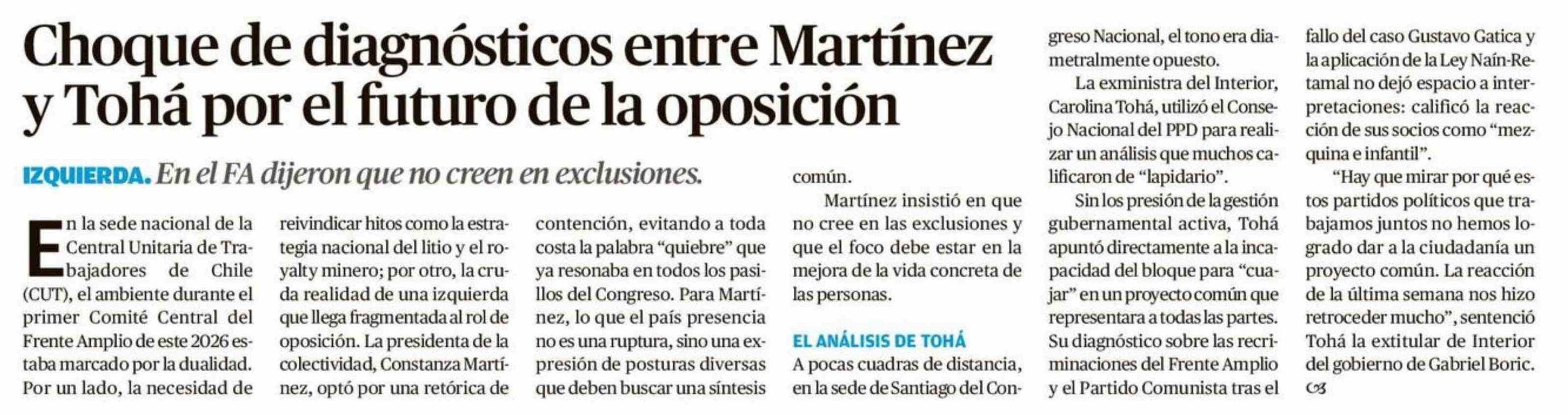 Título: Choque de diagnósticos entre Martínez y Tohá por el futuro de la oposición