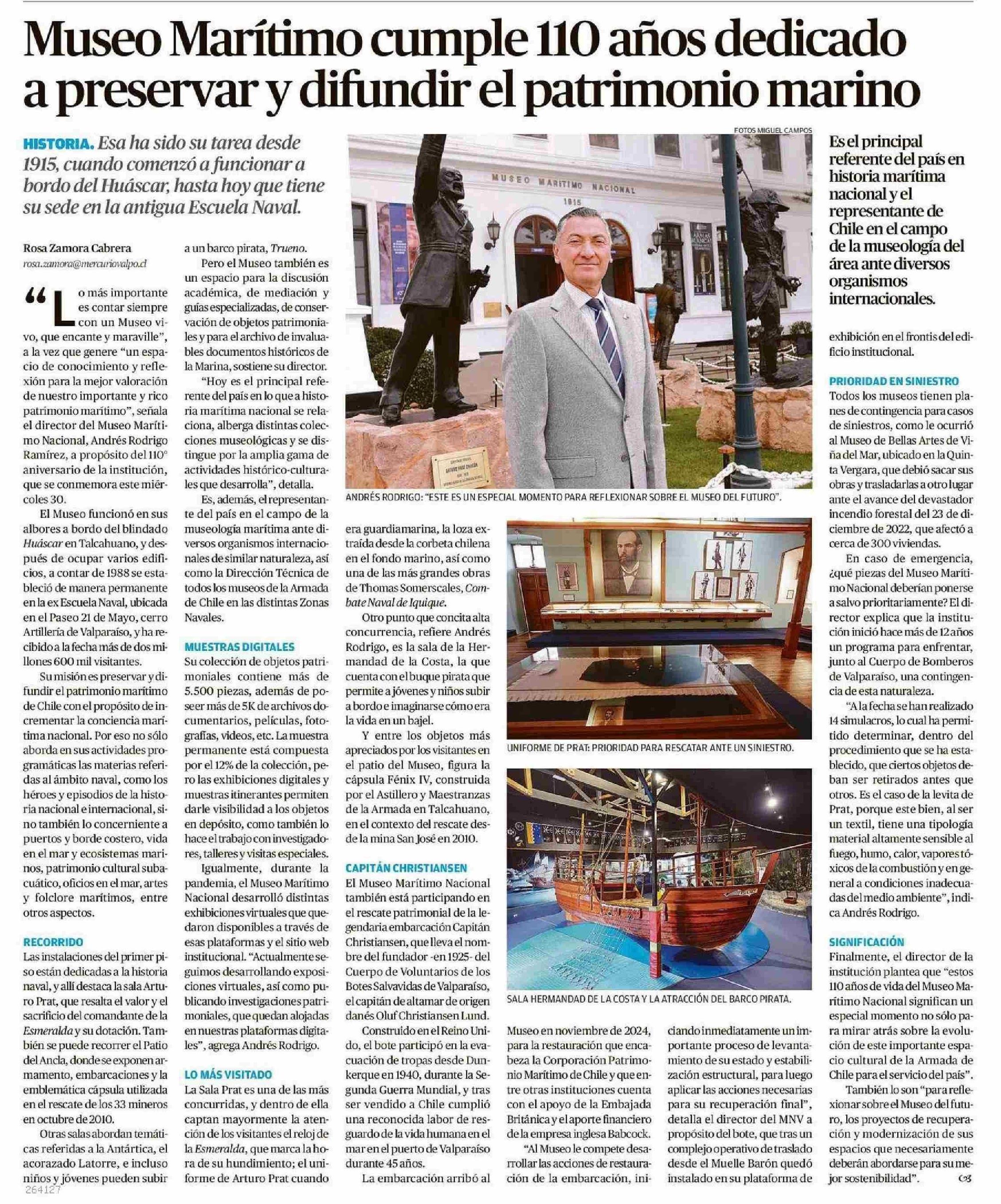 Museo Marítimo cumple 110 años dedicado a preservar y difundir el patrimonio marino 28-04-2025 El Mercurio de Valparaíso |