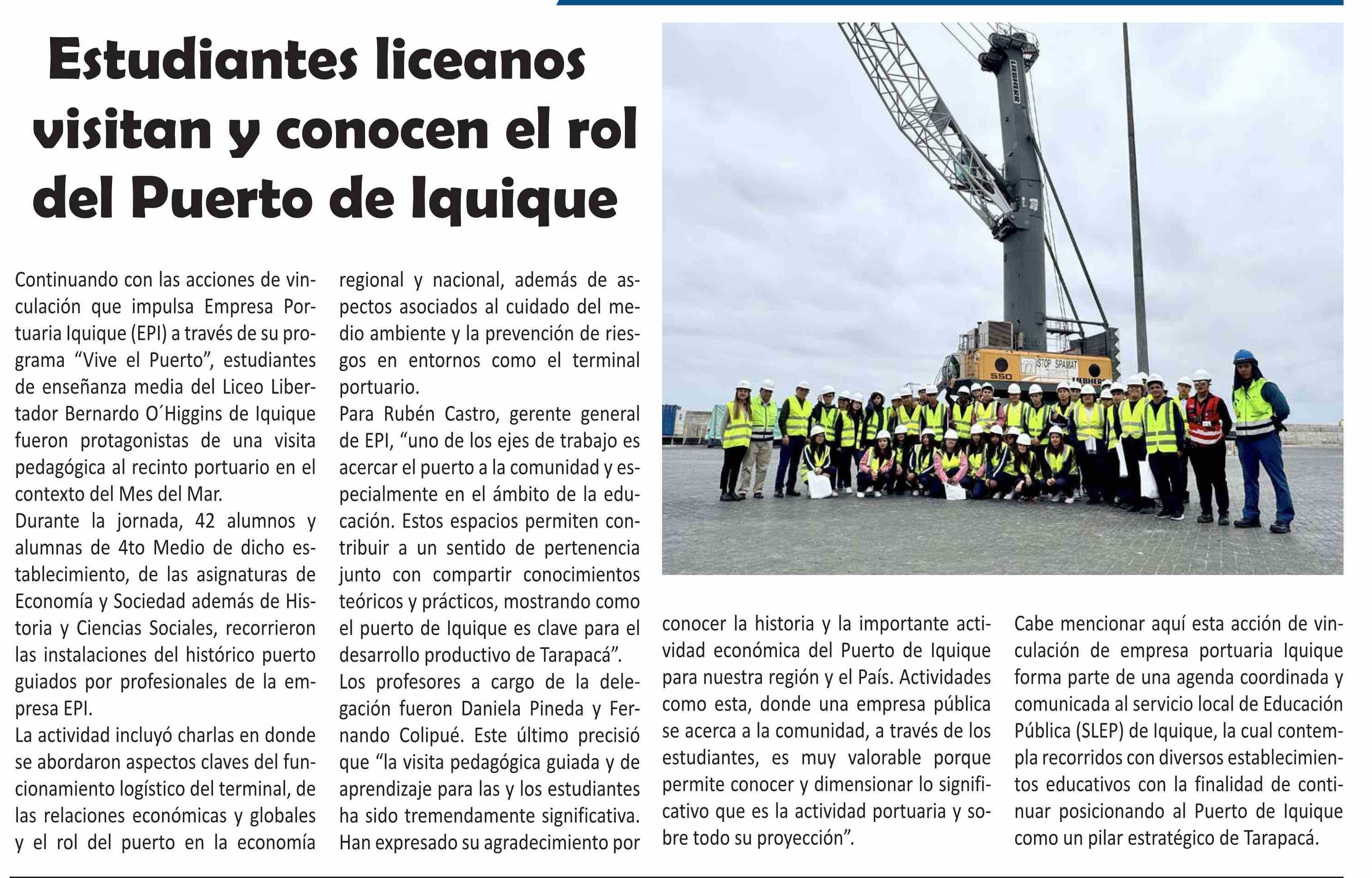 Estudiantes liceanos visitan y conocen el rol del Puerto de Iquique 17-05-2025 El Longino |