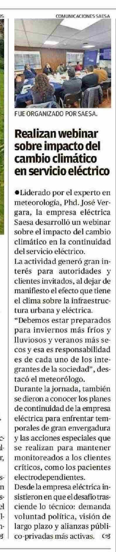 Realizan webinar sobre impacto del cambio climático en servicio eléctrico 21-06-2025 Diario Austral Región de Los Ríos |