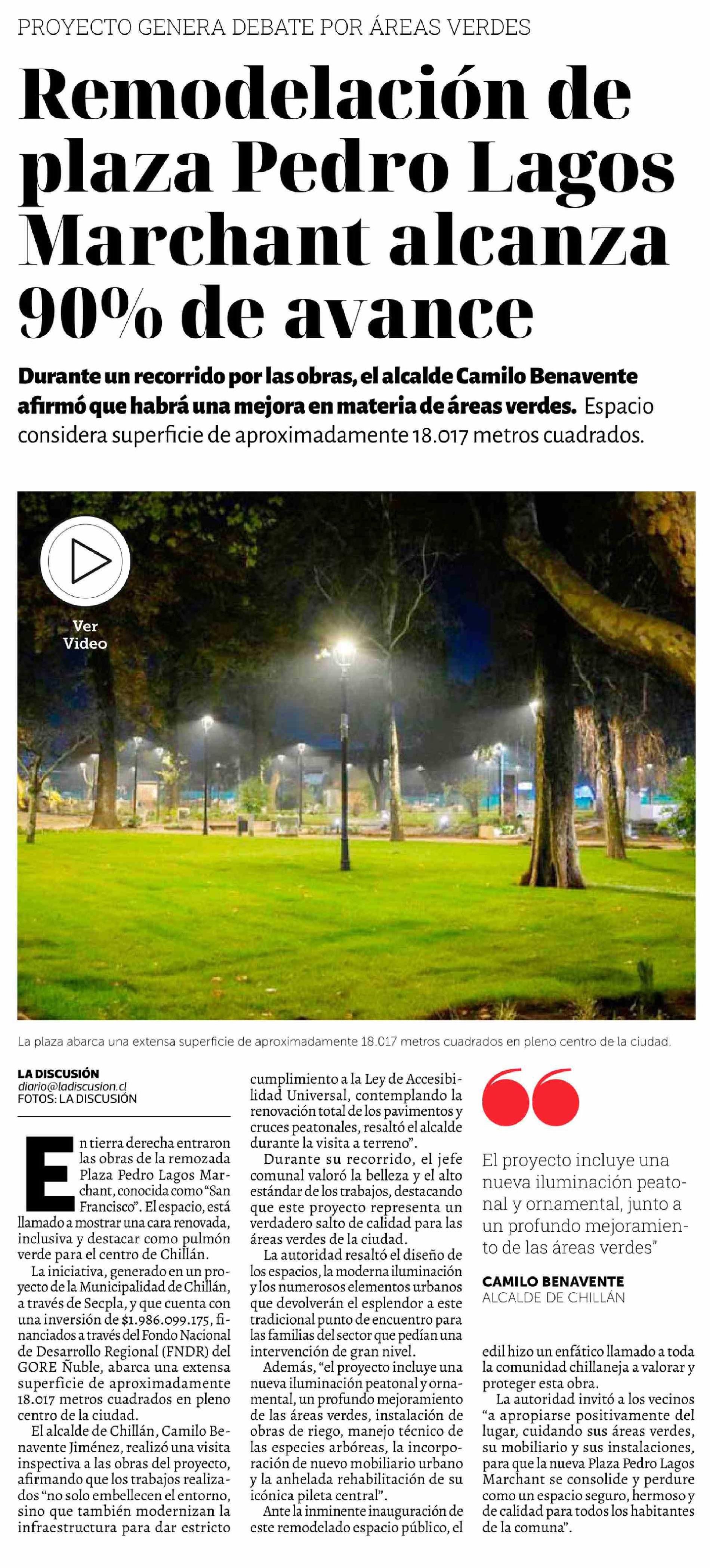 Título: Remodelación de plaza Pedro Lagos Marchant alcanza 90% de avance