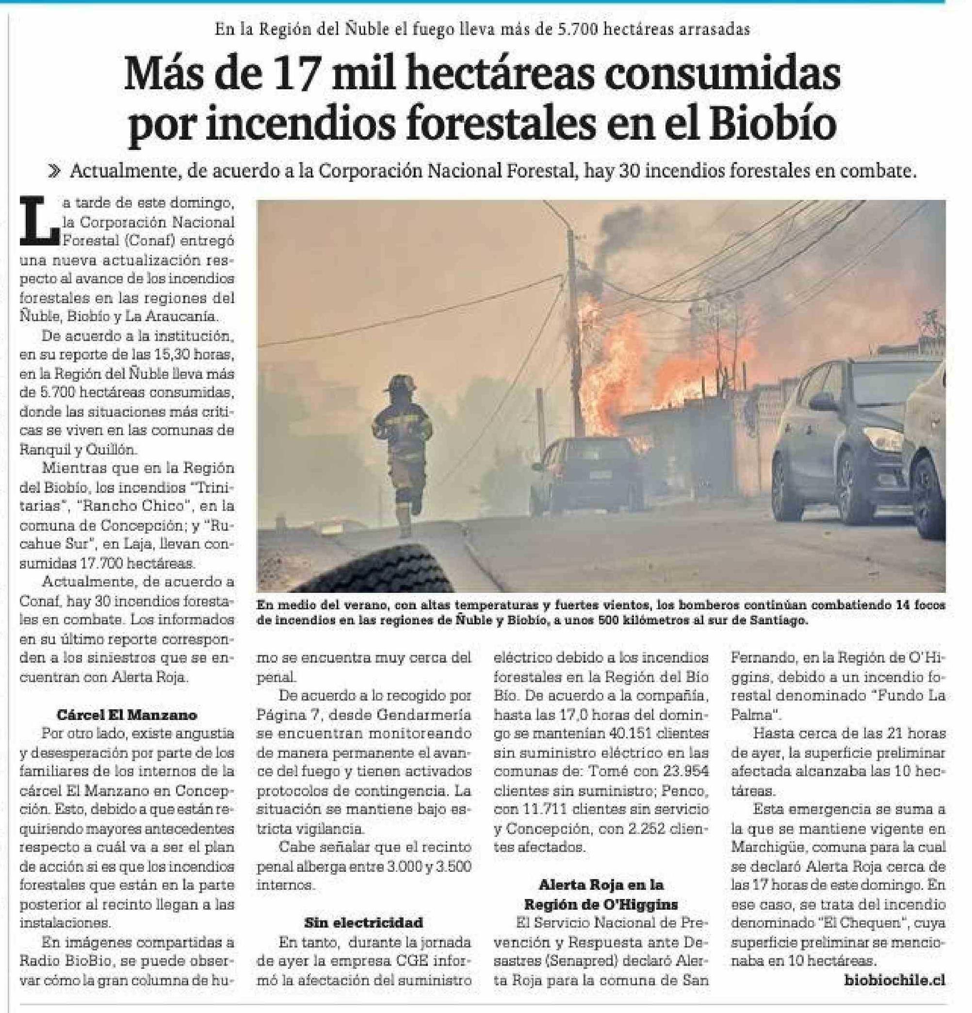 Más de 17 mil hectáreas consumidas por incendios forestales en el Biobío 19-01-2026 La Prensa Austral |