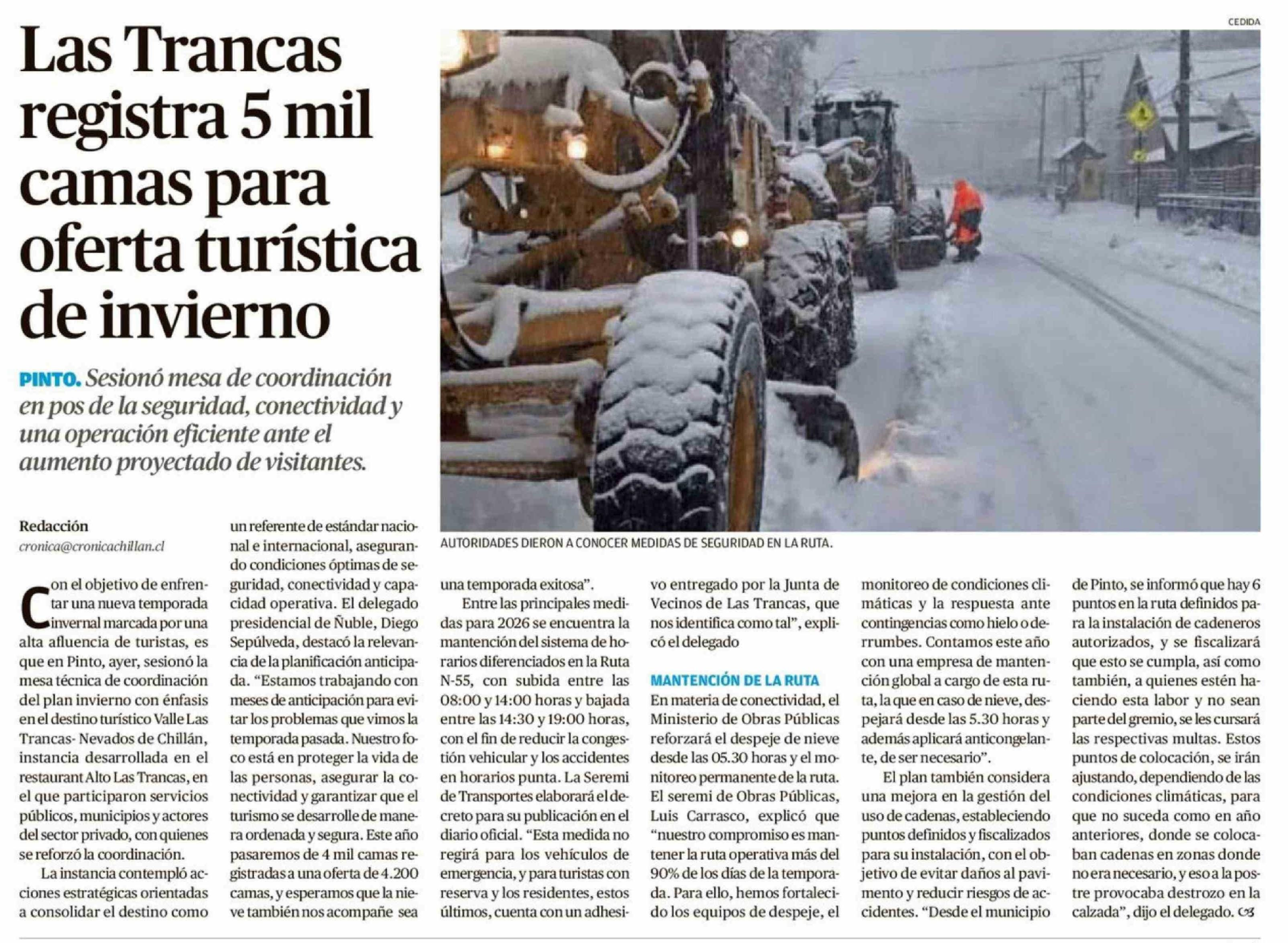 Las Trancas registra 5 mil camas para oferta turística de invierno 29-04-2026 Crónica de Chillán |