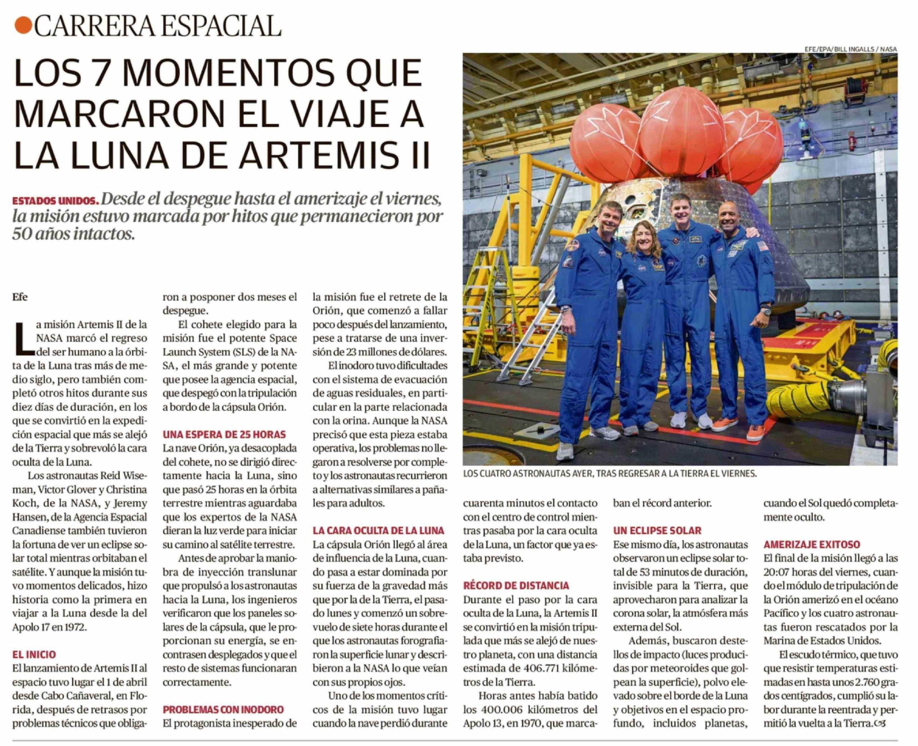 | Título: | LOS 7 MOMENTOS QUE MARCARON EL VIAJE ALA LUNA DE ARTEMIS II |
