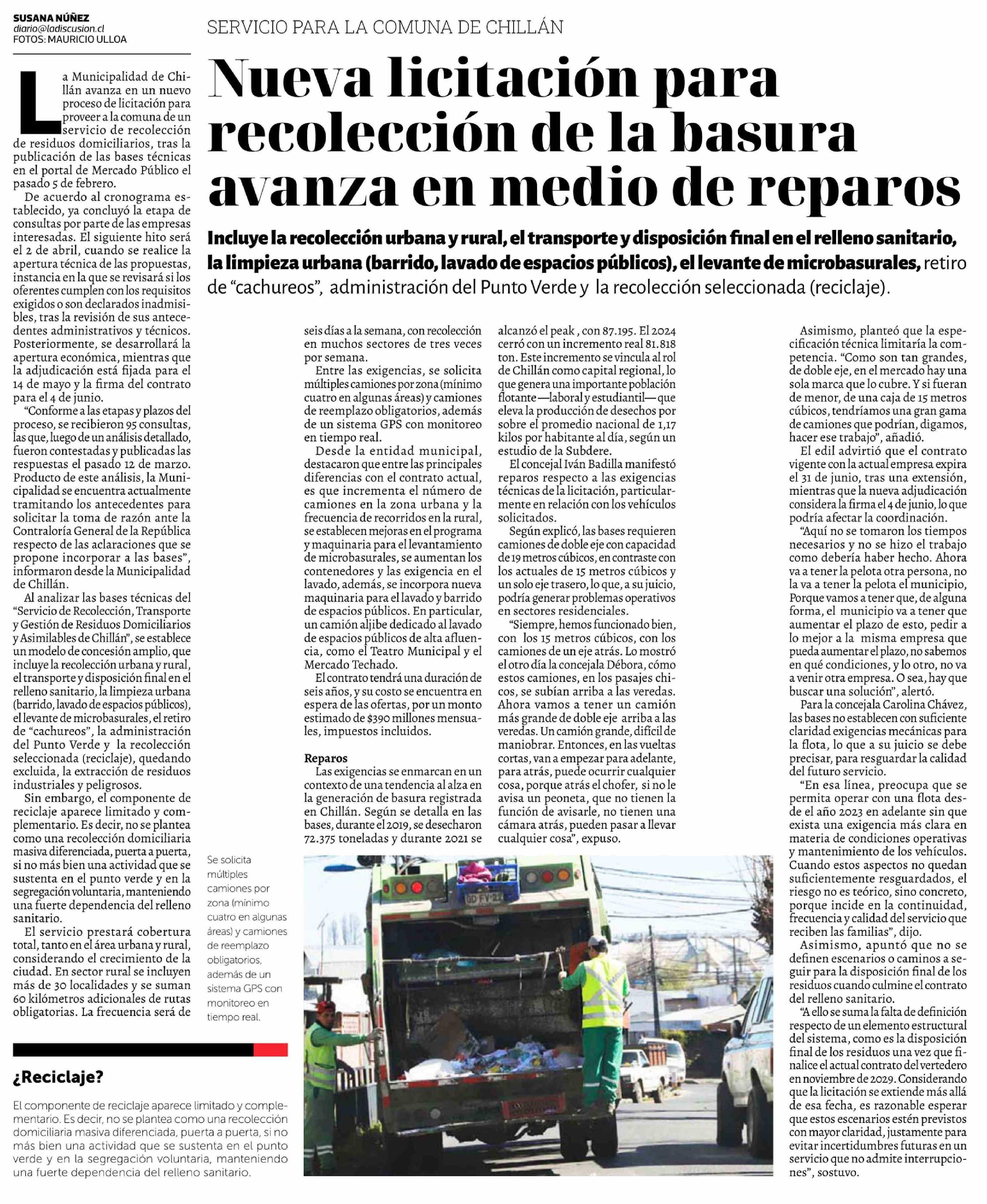 Título: Nueva licitación para recolección de la basura avanza en medio de reparos
