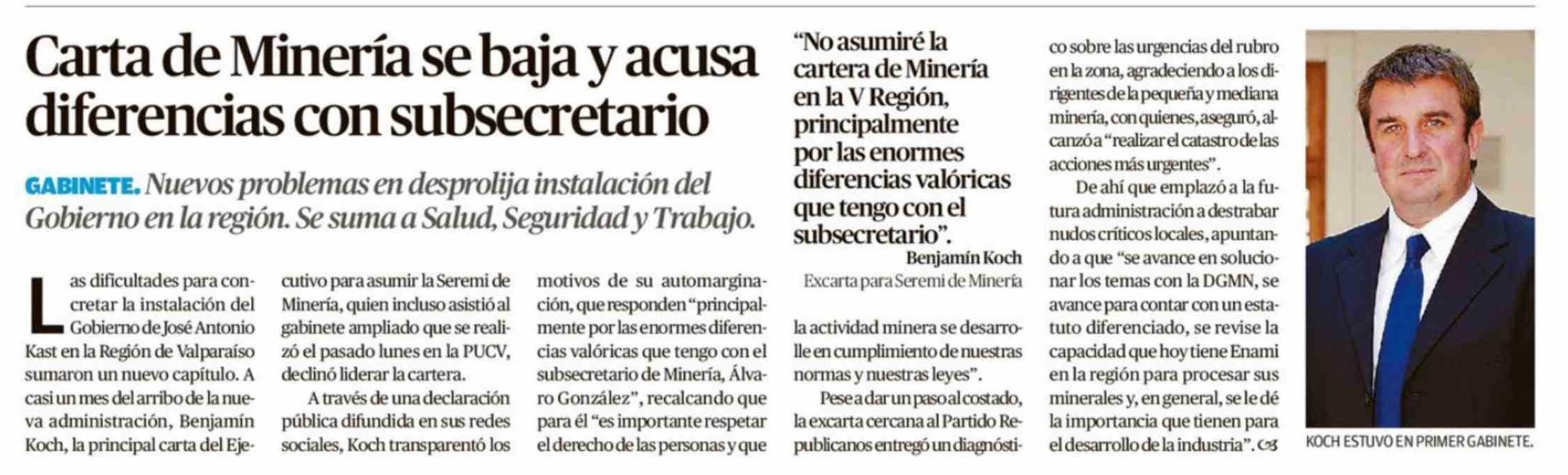 Carta de Minería se baja y acusa diferencias con subsecretario 12-04-2026 El Mercurio de Valparaíso |